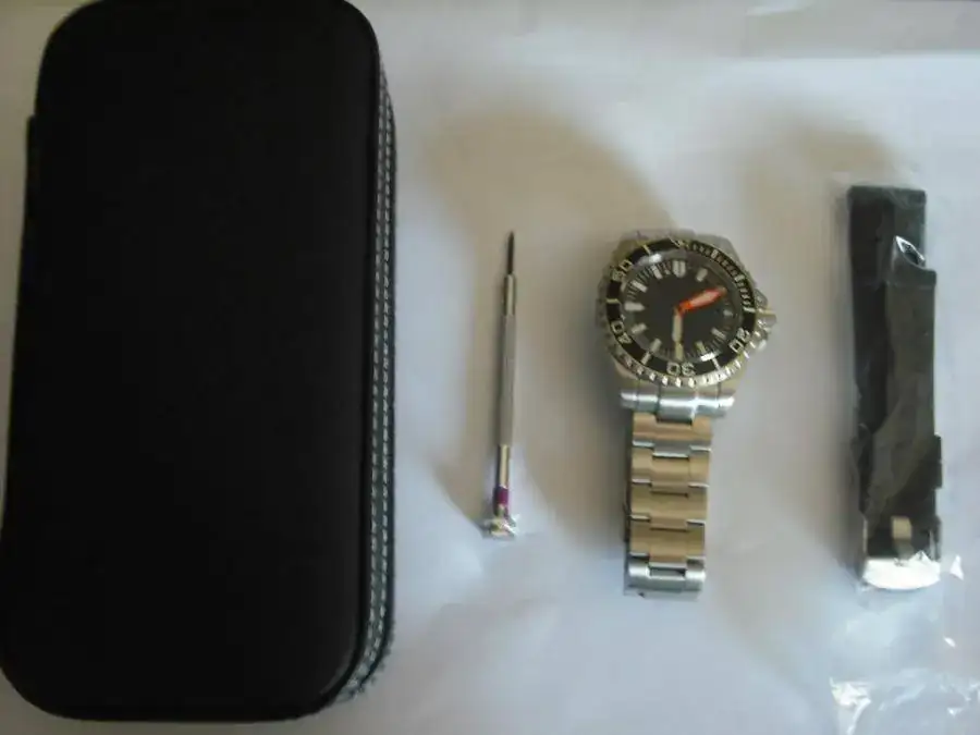) y con la correa de caucho a estrenar. El reloj tiene muy pocas puesta pues los roto mucho, nunca ha sido mojado ni abierto. El precio 480 €, envío incluido por correo certificado. No cambios por favor ya que es para financiar otra entrada.Ahora las fotos de rigor (malas)