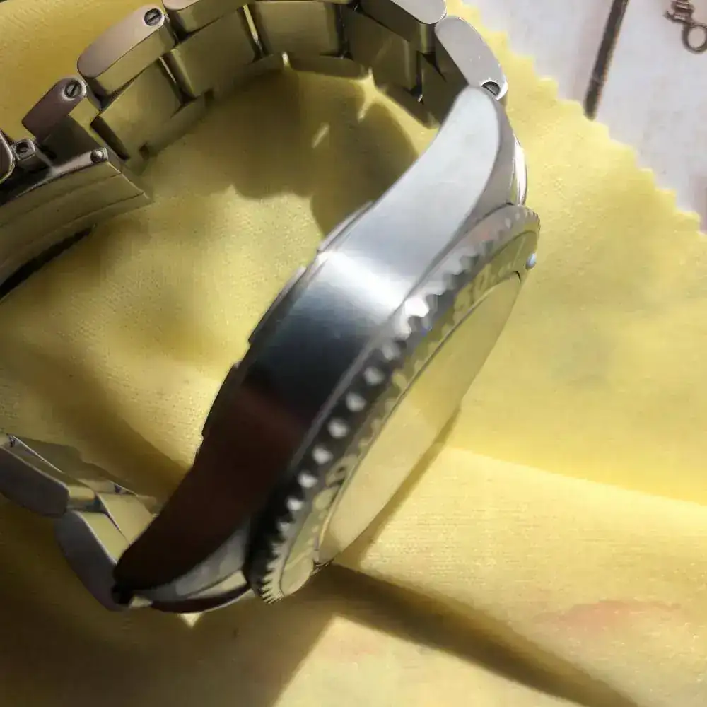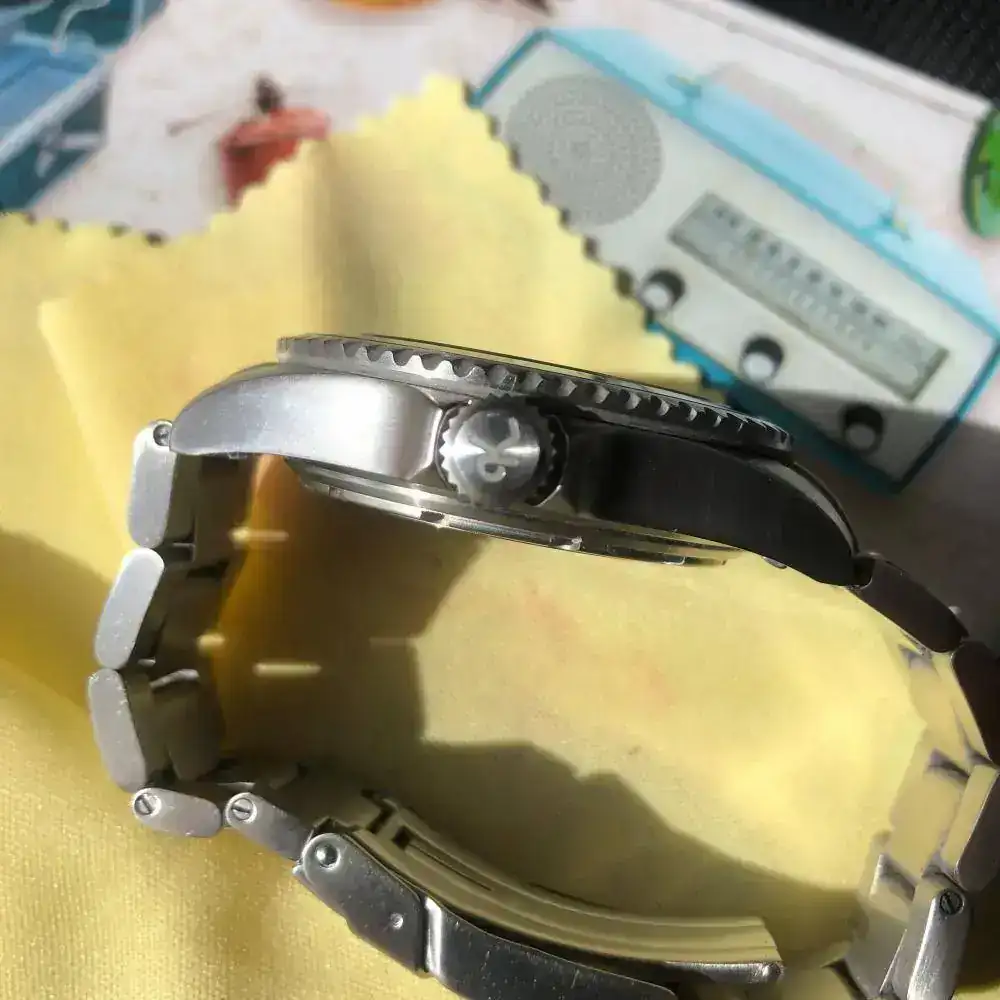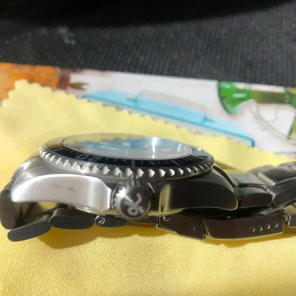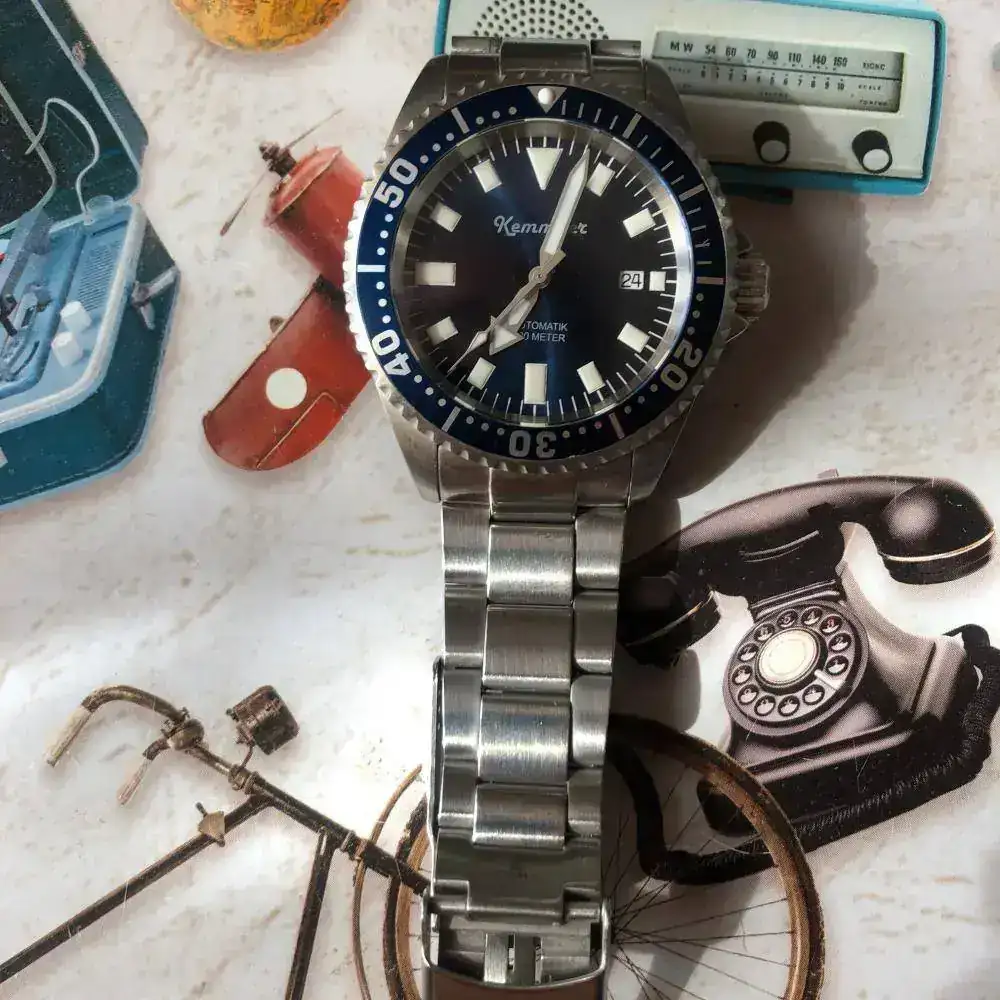 Pues sí ,aunque parezca extraño NO es un Kemmner Octopus en un Turtle, un reloj alemán muy raro de ver en estos lares. Es un diver cómodo de llevar de 42mm. sin corona. Lo he usado solo en verano en rotación con otros divers veraniegos, algún bronce, etc. Tiene algunas micro rayas del uso pero no alcanzó a ver nada significativo. La esfera azul y el bisel son nuevos (les cambié porque los quería azules). Envío también una esfera de color entre rojo y rosa (seguro que habrá alguien que ponga nombre a ese color) por si apetece cambiar. Tiene una superluminova C1 que se ve genial en la oscuridad.