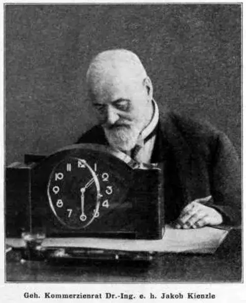 Jakob Kienzle nació el 12.04.1859 como hijo de un comerciante de granos en Schwenningen. Ya tres meses antes de su nacimiento, su padre biológico murió. La hermana del padre de Jakob estaba casada con Friedrich Mauthe, el fundador de la fábrica de relojes "Mauthe". Esto asumió la tutela del niño y lo presentó después de su graduación de la escuela secundaria con 14 años en la propia empresa. Jakob aprendió los principios básicos de la relojería y se convirtió en contable.