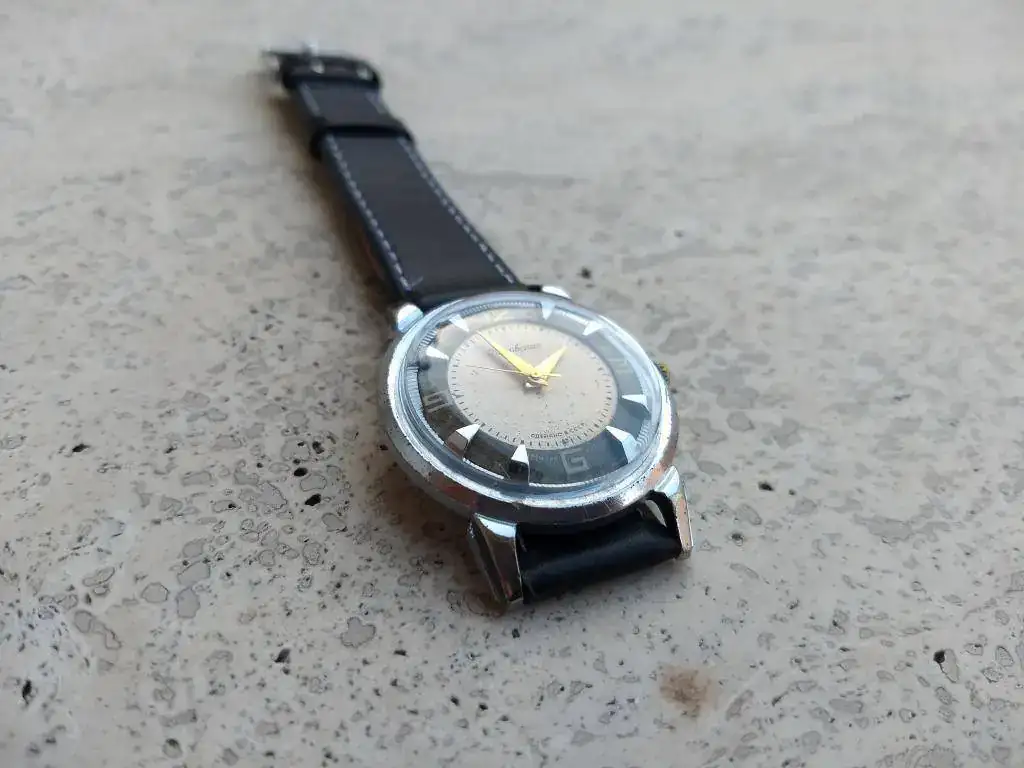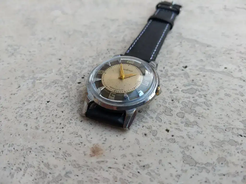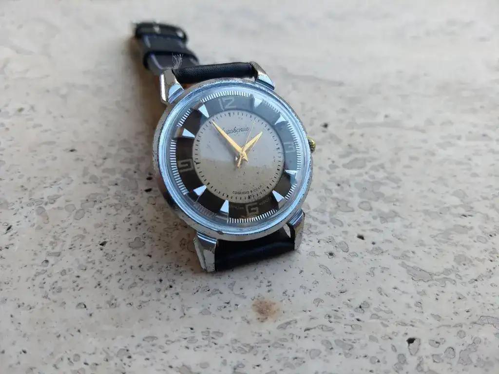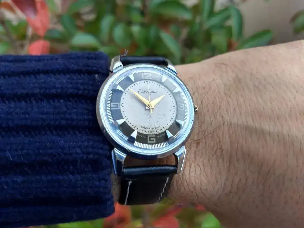 Oportunidad de adquirir una pieza histórica y a la vez muy ponible, un reloj divertido testimonio de los orígenes de la gloriosa relojería ruso-soviética, en condición muy buena para sus años y al precio de un par de cenas.
