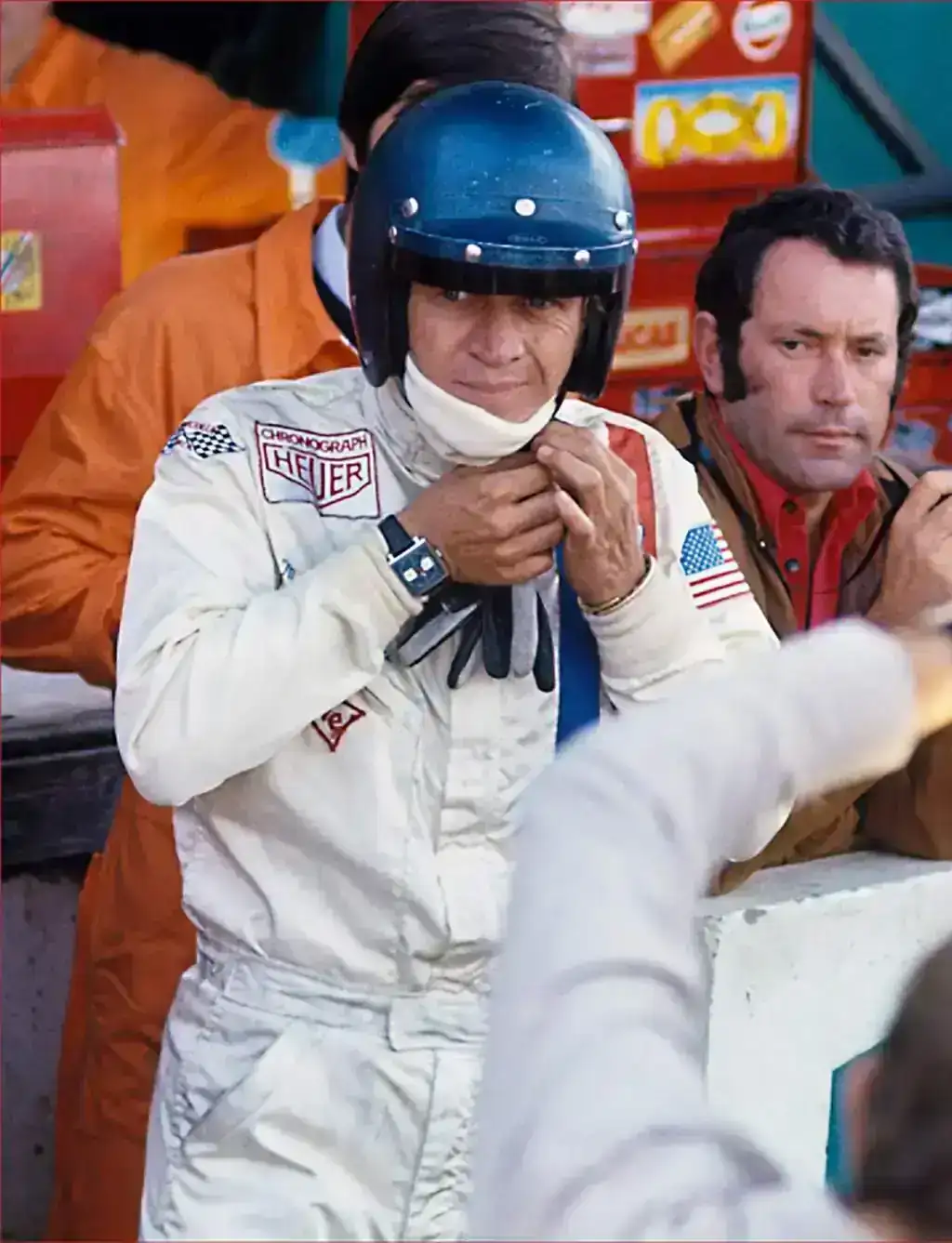 Aquí una foto de Steve para la película y la que incluso se sigue usando en catálogos de Tag Heuer para publicitar el modelo Monaco.