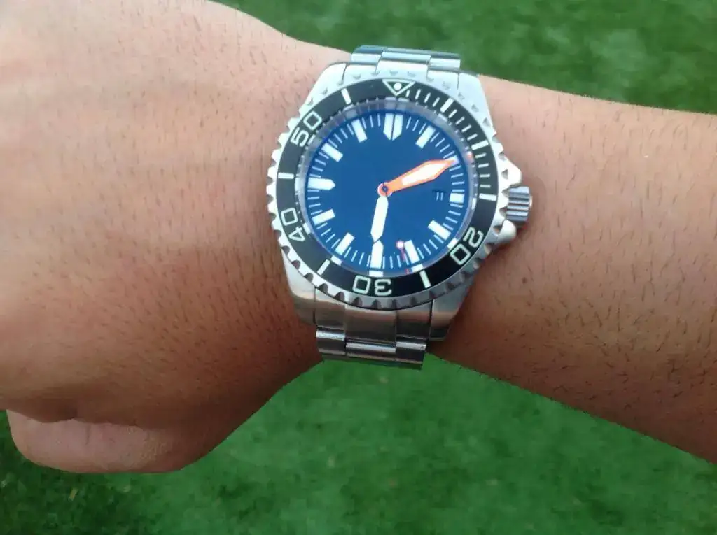 Yo tengo el "solo fecha" con leyendas en negro y con el Calibre ETA 2428 2 Top; estoy muy contento con él pero la verdad es que me lo pongo poquísimo. Me lo puse bastante el verano en el que me llegó pero luego su tamaño y contundencia lo han venido relegando porque sólo es cómodo llevarlo en verano con manga corta. Pero es un gran reloj (literal y valorativamente ;-)).