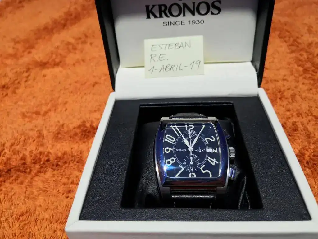 Buenas noches: Pono en venta este Kronos Cronógrafo Suizo Tonneau, funcionando a la perfección y con muy poco uso.