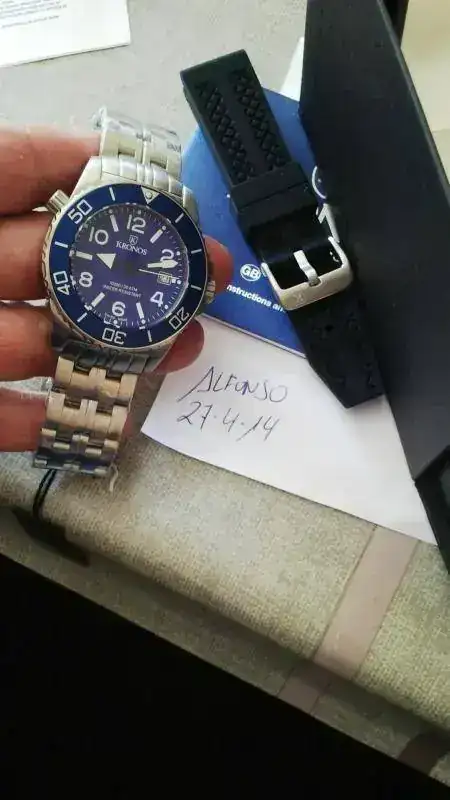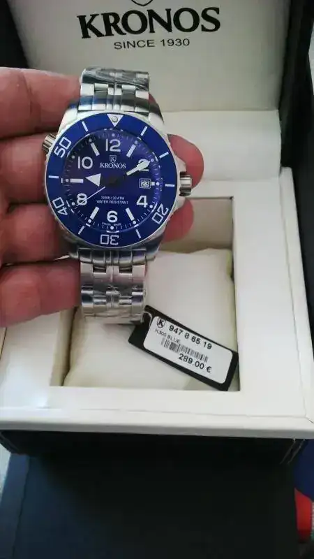 saco a la venta este precioso KRONOS DIVER 300. Resulta que lo compré la semana pasada para un regalo a un familiar y al abrir el paquete me dijo la típica frase de... "no me hace objeto". Ante dicha situacion me veo en la obligación de sacarlo a la venta. Está sin estenar, solo ha salido de su caja para las fotos. Va precintado tal como vino de casa, con plastico a lo largo de todo el armis. Añadir que para este precio es un relojazo. Corazón de cuarzo suizo, cristal de zafiro, bisel cerámico, 300m y valvula de descompresión. Ademas, lleva en la dotación una correa de caucho para hacerlo más ligero. Para más pruebas, decir que la garantía de 2 años entra en vigor el 2 de Mayo por lo que tiene su periodo de garantía completo.Sin más que añadir, os dejo unas fotos y el precio. 195€. Derribo para un reloj de estreno!!