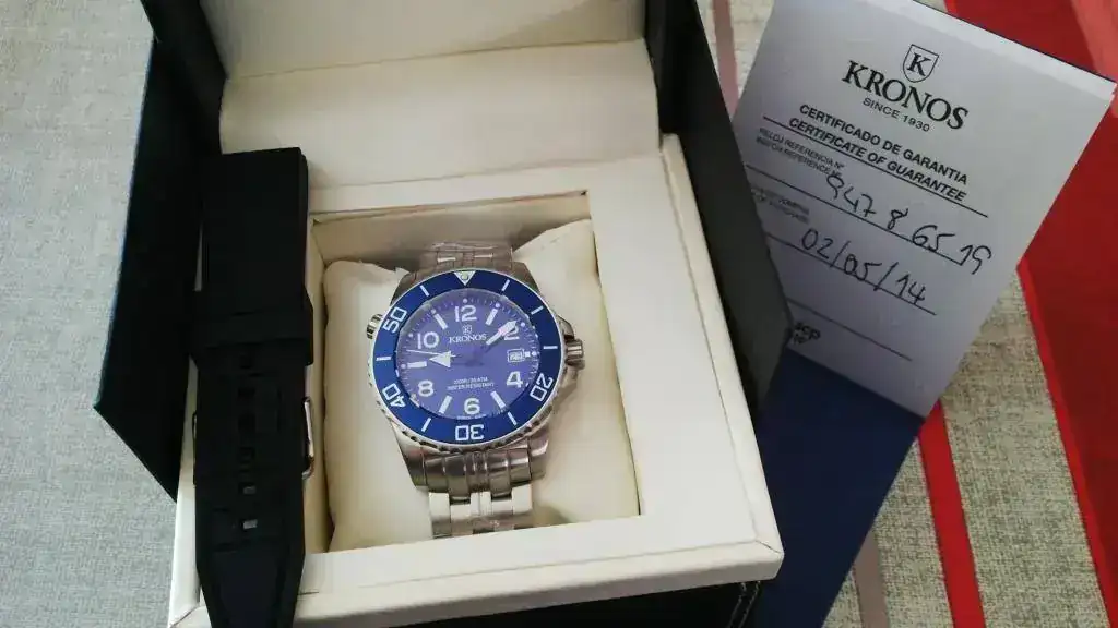 saco a la venta este precioso KRONOS DIVER 300. Resulta que lo compré la semana pasada para un regalo a un familiar y al abrir el paquete me dijo la típica frase de... "no me hace objeto". Ante dicha situacion me veo en la obligación de sacarlo a la venta. Está sin estenar, solo ha salido de su caja para las fotos. Va precintado tal como vino de casa, con plastico a lo largo de todo el armis. Añadir que para este precio es un relojazo. Corazón de cuarzo suizo, cristal de zafiro, bisel cerámico, 300m y valvula de descompresión. Ademas, lleva en la dotación una correa de caucho para hacerlo más ligero. Para más pruebas, decir que la garantía de 2 años entra en vigor el 2 de Mayo por lo que tiene su periodo de garantía completo.