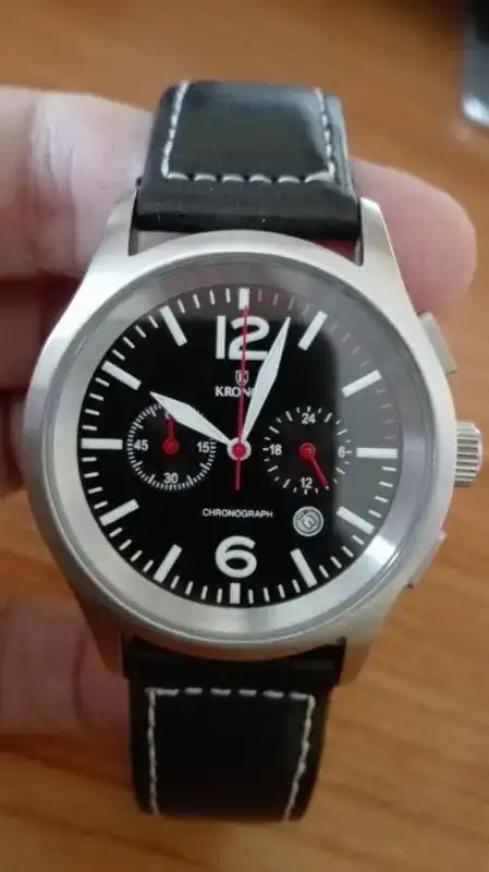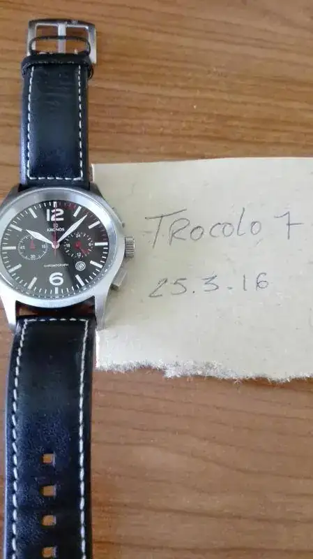 Buenos días a todos. Vendo mi Kronos KLC en un estado excelente. Ha tenido poquísimo uso y la pila ha sido cambiada no hace ni un mes. Como digo está impoluto, tanto la caja como el cristal, y la correa de piel con pespunte blanco está digamos que al 75-80% de vida útil todavía. Lamentablemente no tengo la caja, ya que se estropeó, pero va en una caja de cortesía, bien resguardado y envuelto. Ya no está en garantía, caducada en enero de 1015. En definitiva, es un reloj muy chulo y resultón, que combina con cualquier tipo de vestimenta, casual, elegante..