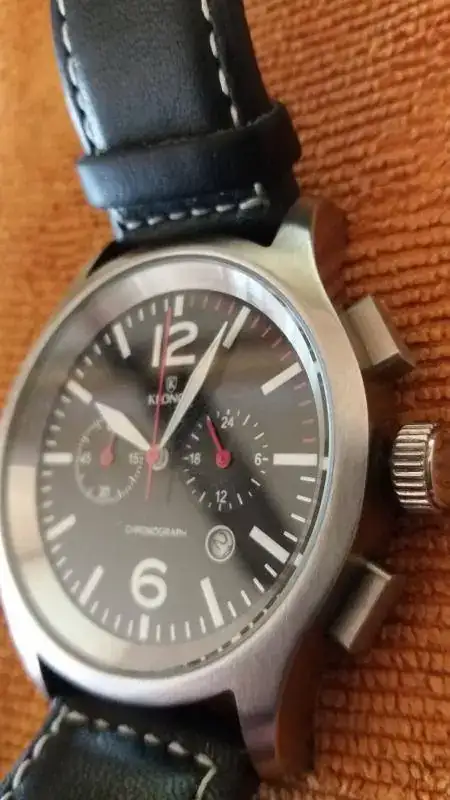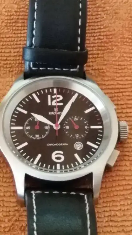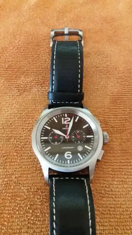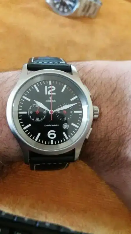 Buenas tardes. Vendo o cambio este crono pilot Kronos KLC en un estado muy bueno y con muy poco uso. Su funcionamiento es perfecto. Caja y cristal en perfecto estado. La correa de piel color negro con pespunte blanco y hebilla firmada,tiene muchísima vida por delante. No tiene caja original, pero irá convenientemente envuelto y en caja de cortesía. Para cambios, lo que me propongáis lo estudiaré. Preferentemente automáticos, aunque tenga que poner dinero, o cronos cuarzo Seiko. Digitales no, por favor.