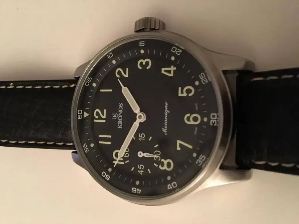 Hola a todos, pues por falta de uso y porque voy persigiendo otros objetivos pongo a la venta este kronos de cuerda manual en un estado impecable, usado en media docena de ocasiones y alomejor me quedo largo, el reloj va completo de caja y papeles, garantia sellada en 2015 y con la correa original a estrenar porque las veces que le he usado ha sido con otra, es un reloj grande pero no desproporcionado y tiene una esfera limpia buenos acabados en general, no me enrollo mas, las fotos y la ficha: