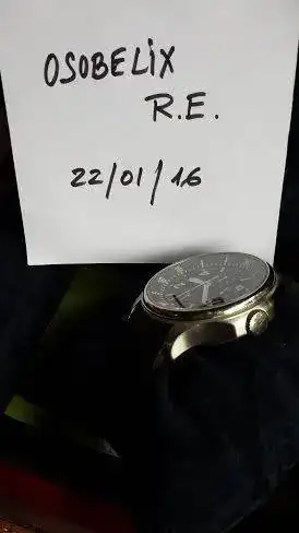 el reloj tiene uso, no está impoluto aunque en bastante buen estado, un par de leves toques en el asa superior izquierda, he tratado de que se vea en la foto del papelito.