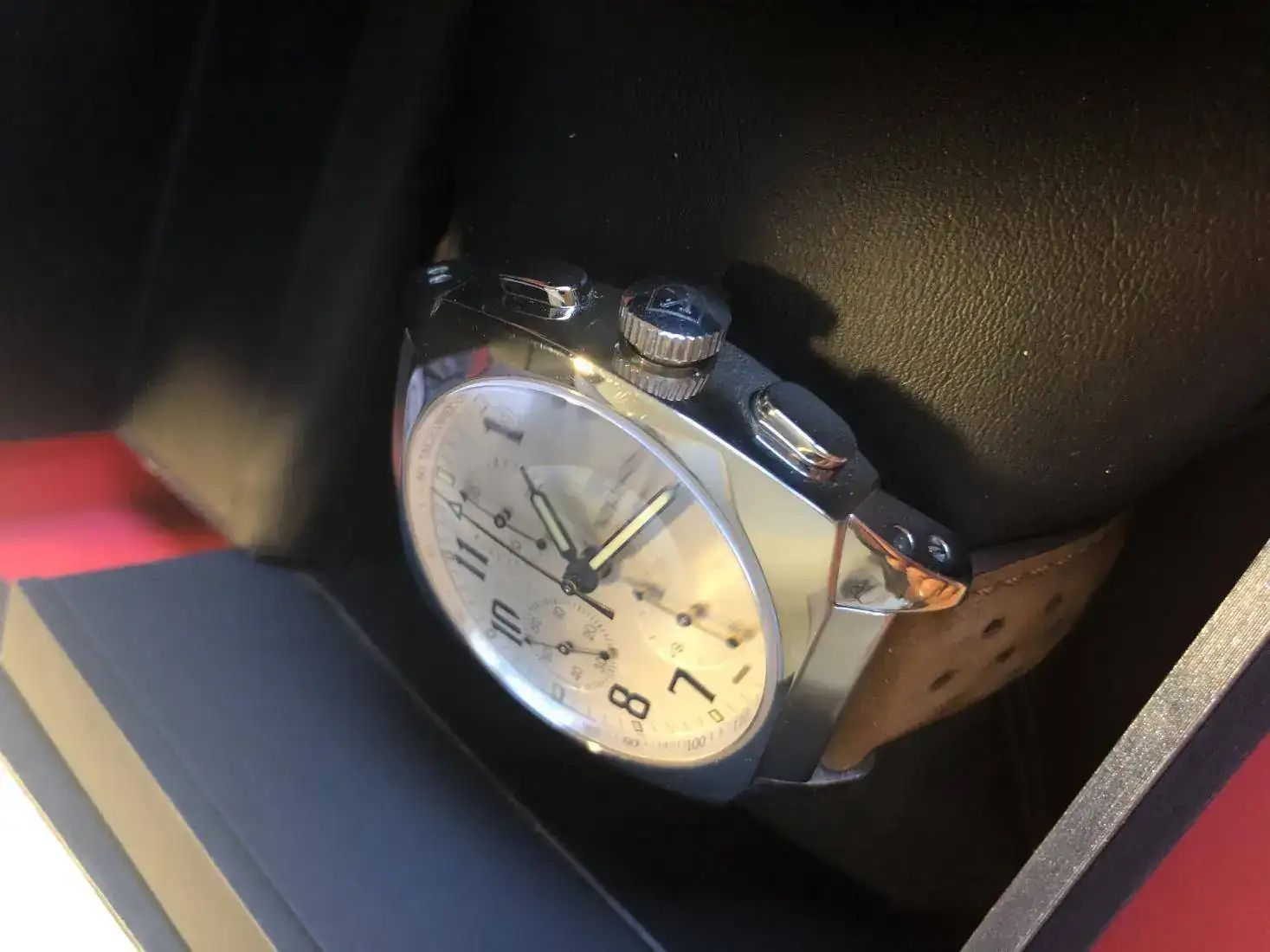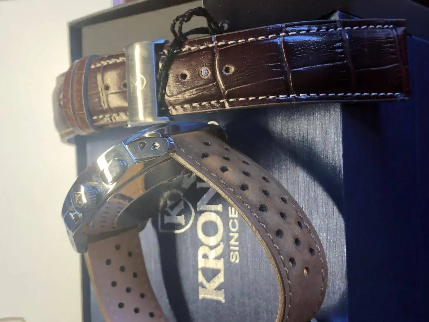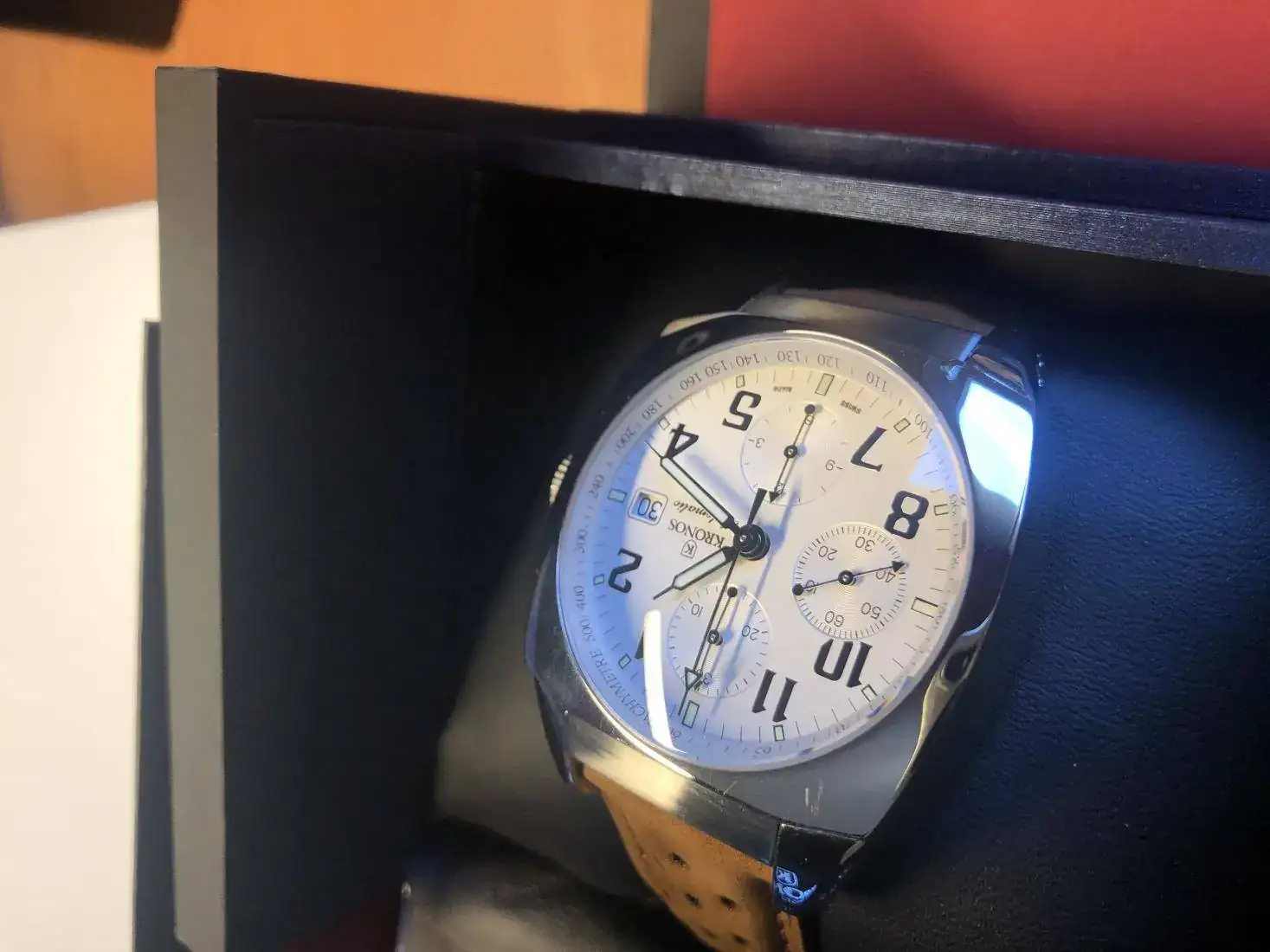 Hola, vendo este precioso reloj Kronos en un estado de auténtico re-estreno, con plásticos y con correa extra tipo rally nueva preciosa que le queda genial, la suya de coco con deplo está sin estrenar, este reloj tiene un pvp de 1.250€ y yo lo saco con un 52% de descuento.
