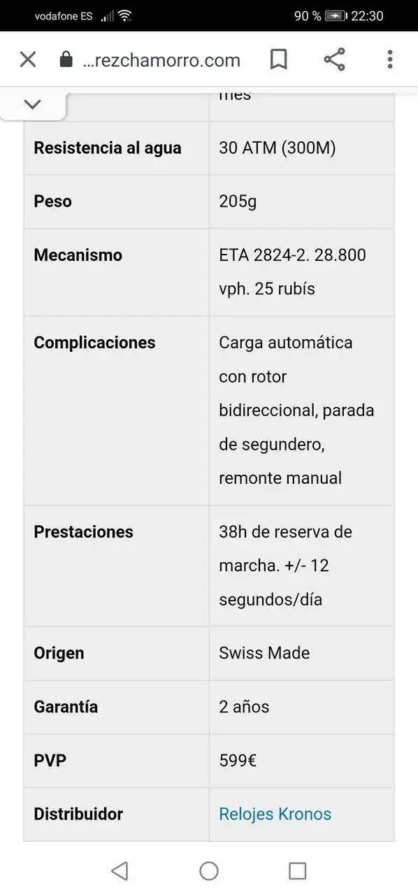 Relación calidad precio no tiene competencia. He tenido el chrono con eta 7750 y todo bien menos el peso,que brincaba los 220gr,el tuyo veo que está en 205gr, esos 20 demás a mi no me resultó fácil el llevarlo. Que lo disfrutes.