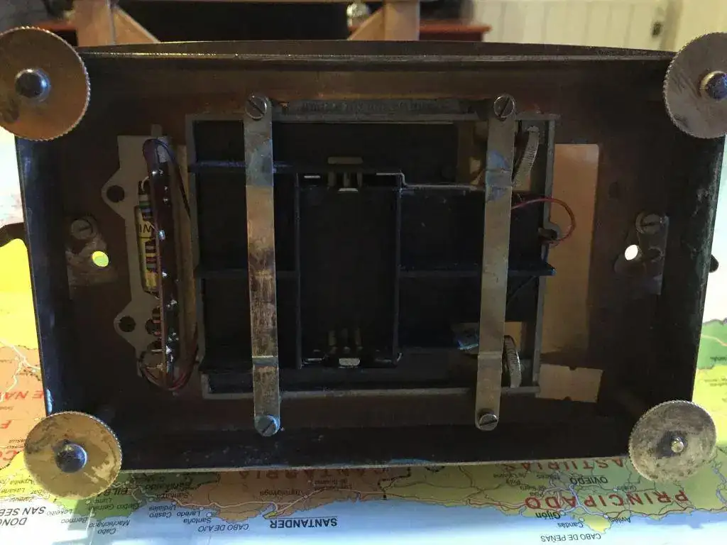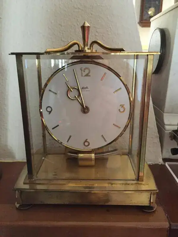 Reloj de sobremesa fabricado por kundo en alemania en los años 70, maquinaria mecanica de pendulo que obtiene el movimiento al pasar por un electroiman que cambia la polaridad, toda una belleza en accion, alimentado con una pila incluida. mide 25x19cm, señales del paso de los años pero conservando una buena estetica. 165€ envio incluido por nacex 24h. saludos.