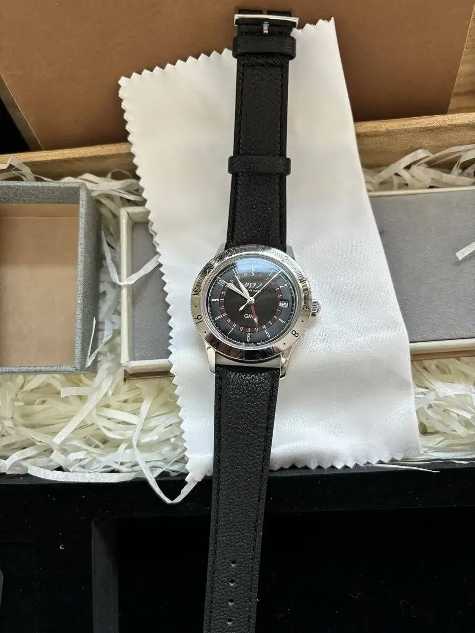 No voy a explayarme mucho sobre el movimiento GMT, que creo que ya han comentado algo. Es un Miyota 9075, un movimiento GMT japonés, de coste más bajo que los habituales movimientos GMT, pero considerado un movimiento con funciones “True GMT”: pensado para viajeros que necesitan controlar la hora con frecuencia en diferentes zonas horarias.