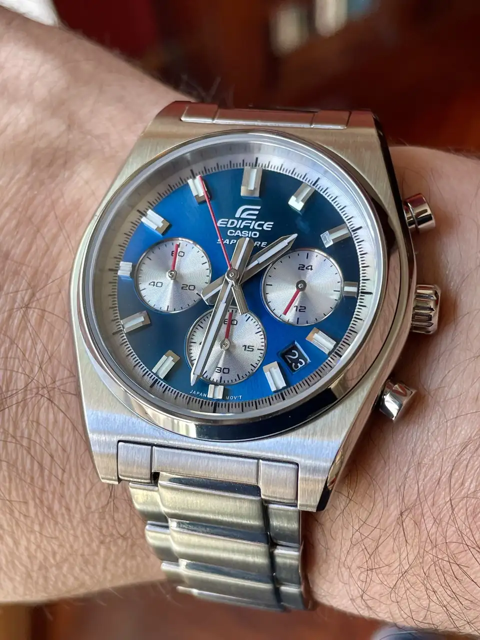 Llevaba tiempo buscando un cronógrafo de corte deportivo de cuarzo para combinar con polos, camisetas y atuendos deportivos y casuales, navegando por la red aparece este año un Casio que parece tener todas las características BBB y sobre todo una esfera diferente a las que rotan en mi caja todo el año, problema, el de siempre, los fabricantes ponen unas fotos genéricas muy poco agraciadas para ver realmente el reloj medianamente real