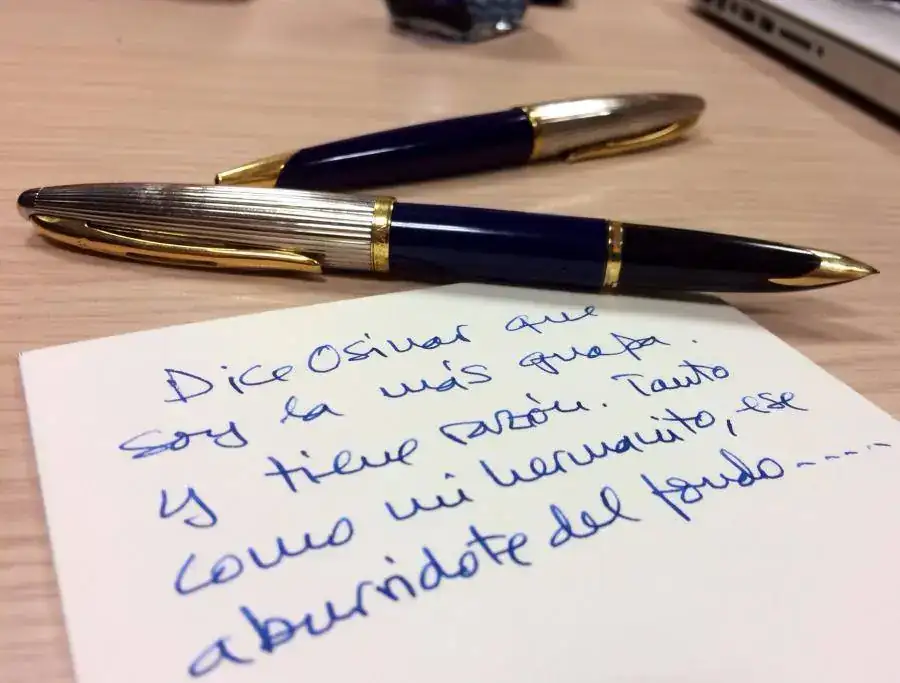 Además de preciosísima, tiene el tamaño, el fluir, el peso... todito lo tiene La Bella. Por tener, hasta tiene que ir al hospital (y van dos) para reparar esa torcedumbre del punto del plumín, producto de la torpeza de un buen amigo.