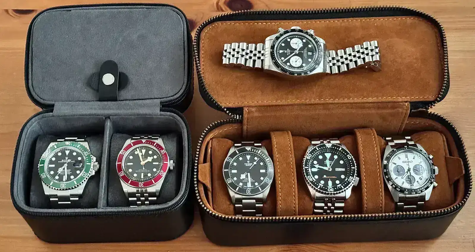 Muy variada y completa.Buenas amig@s, dadas las fechas supongo que al igual que yo unos cuantos estaréis de vacaciones, cuando preparas las maletas piensas y que relojes llevo? Intentas no llevar demasiados pero al mismo tiempo los suficientes para no echar de menos ninguno por unos días, en mi caso son vacaciones las “tipicas de España” 🏖️🍹🥗🇪🇸…, asi que es una caja que tiene que cubrir momentos de playa, piscina, terrazas y todo tipo de restaurantes…, pues aquí os muestro mi pequeña y variada caja de 6, los que estéis de vacaciones y os habéis llevado la vuestra animaros y mostrarla! Y Felices vacaciones compañer@s 🤗