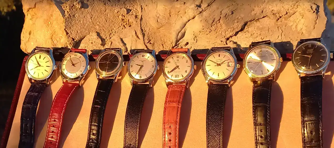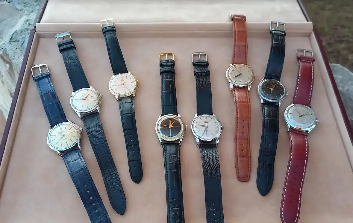 Lo importante para entrar a esta caja es que tienen un calibre revolucionario. Solo pueden ser relojes de los años cincuenta.