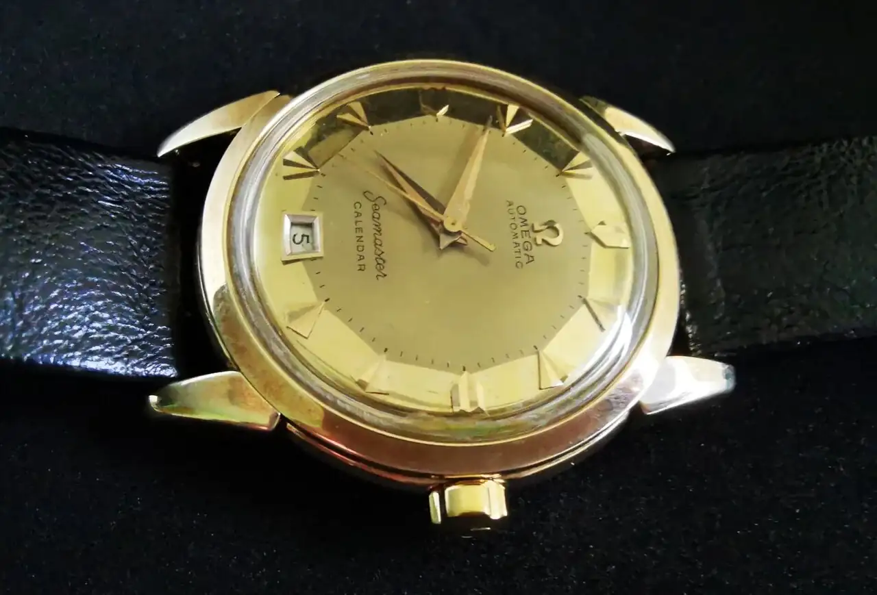 Te dejo foto de un Seamaster 14k, calibre 353, esfera 18k con preciosos índices y ventana de fecha trapezoidal, muy escaso... espero te guste