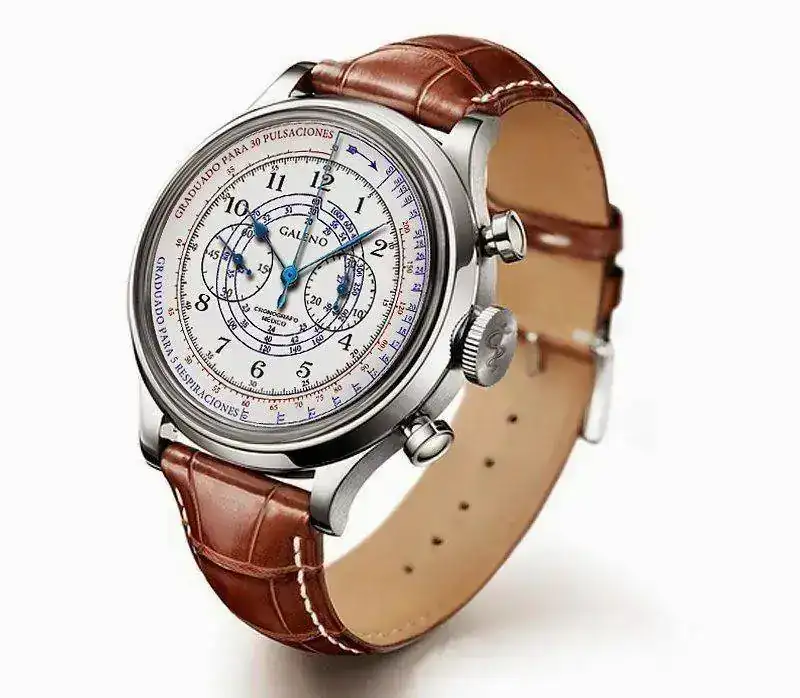 Un cronógrafo de líneas elegantes, sin bisel, amplio y de muy buena lectura.