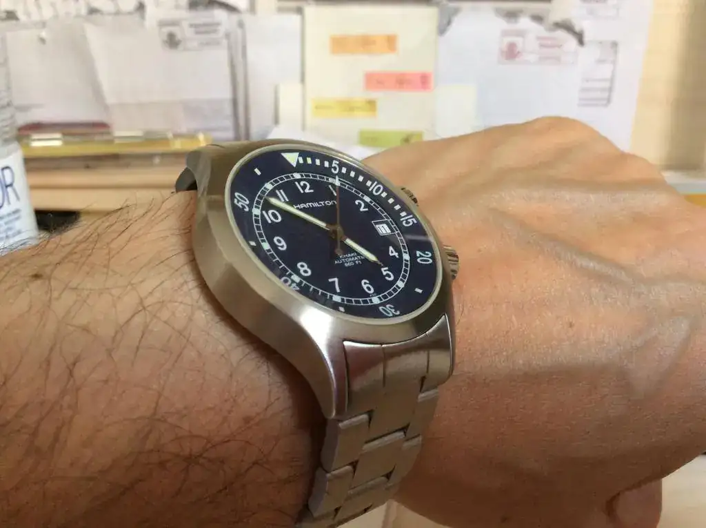 Pues si... Al final fue el Hami, y no me he equivocado. El tamaño es ideal para mí. Además es el primer reloj al que le dejó el armis. La verdad es que no me gustan a priori, pero he decidido darle una oportunidad, aunque abriré otro hilo para pediros consejos sobre algunas correas que he visto. Más fotos...