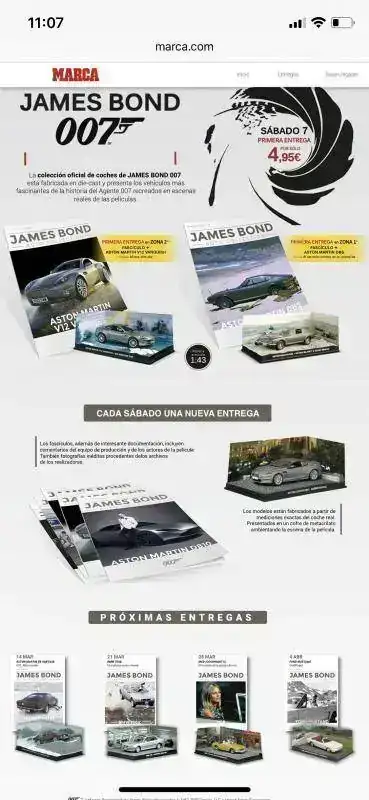 Perdón si esto es publicidad e incurro en alguna norma prohibida del foro, pero hoy leyendo el Marca he visto que van a comenzar una colección de coches en miniatura de James Bond y como veo que aquí tiene mucho tirón el personaje a cuenta de sus relojes me pareció que se podría cuadrar el coche con el respectivo reloj que llevaba.