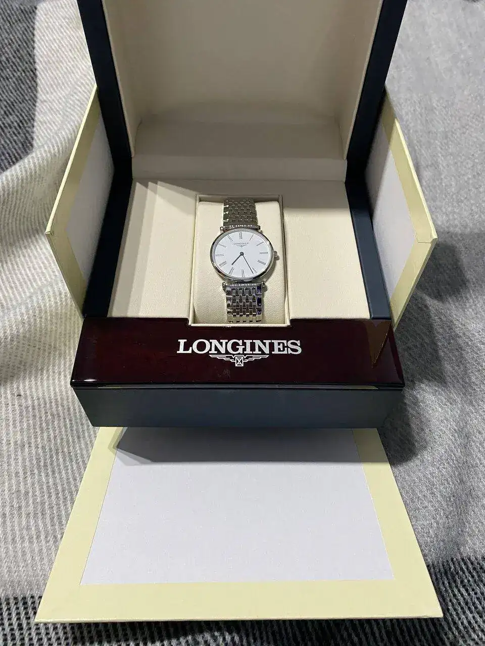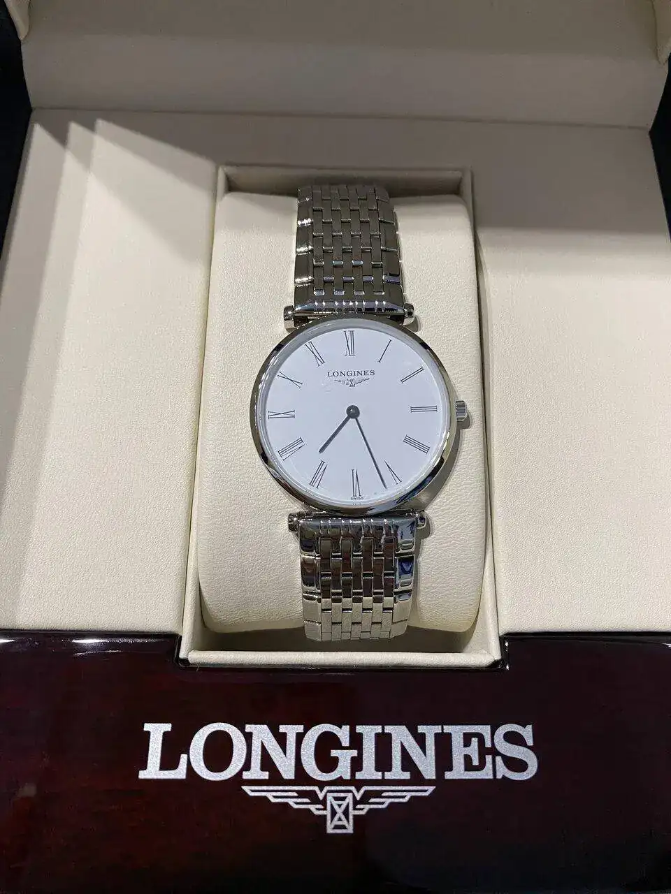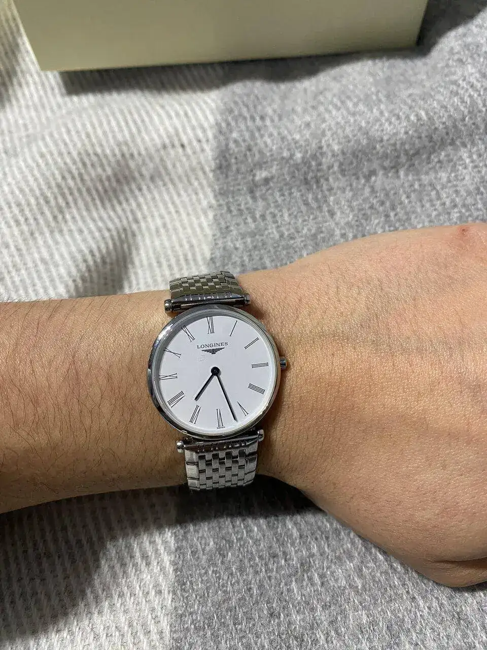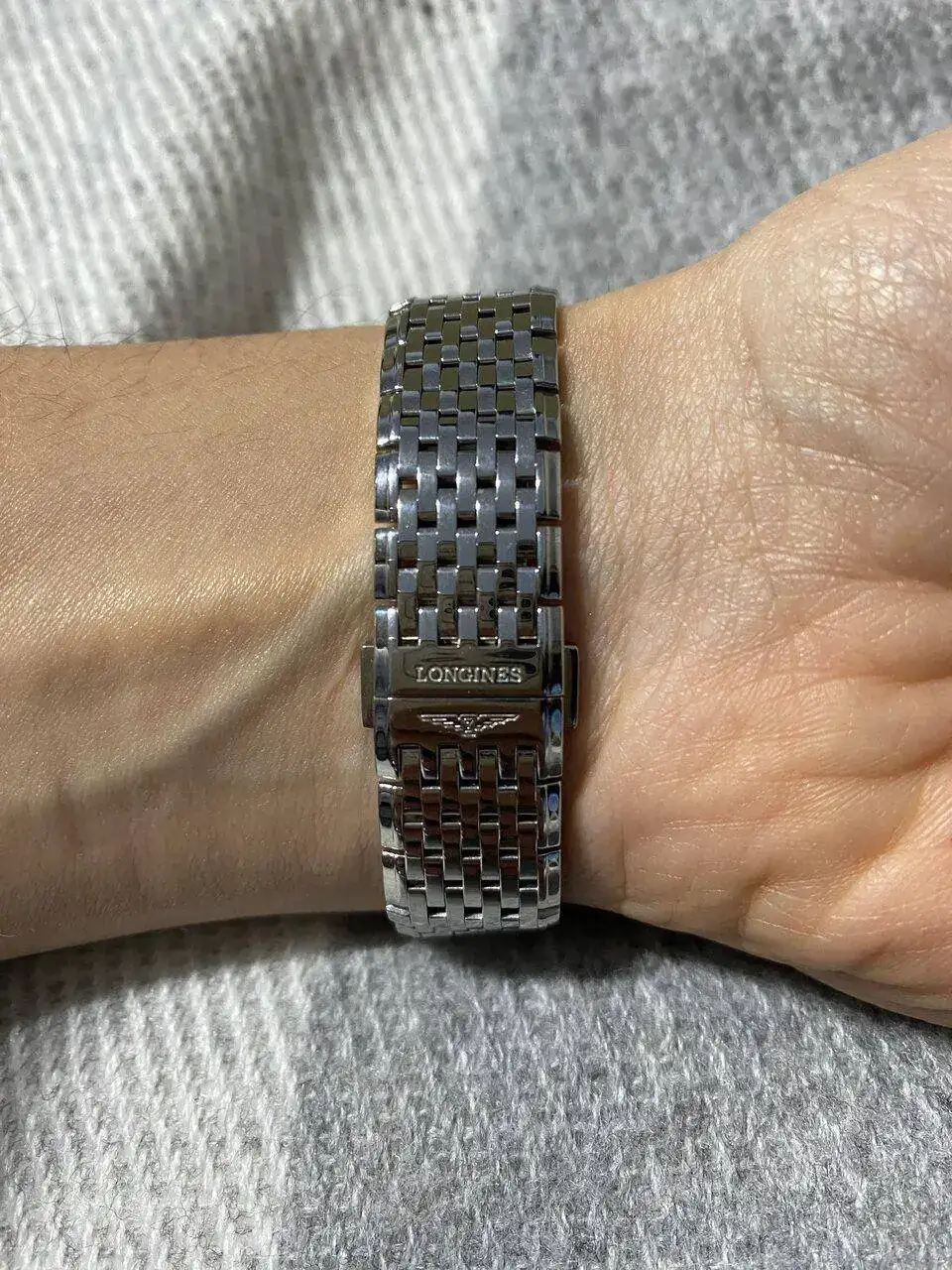 Pues bien, el reloj en cuestión es el modelo La Grande Classique de Longines de 29mm, esfera blanca y correa de acero inoxidable. Y es que es esa correa que parece una pulsera y la forma de unirse a la esfera tan especial, la que a mi me ha cautivado.