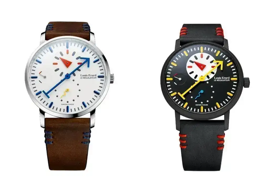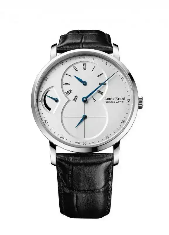 Por su parte, Louis Erard ha venido siendo la otra cara de la moneda: relojes clásicos con tímidos toques "deportivos" a precios comedidos (para lo que es la relojería suiza). Desde su relanzamiento en 2003, el regulador, una disposición que separa los centros de las agujas minutera y horaria para mejorar la lectura y la precisión, es el pilar de sus colecciones.