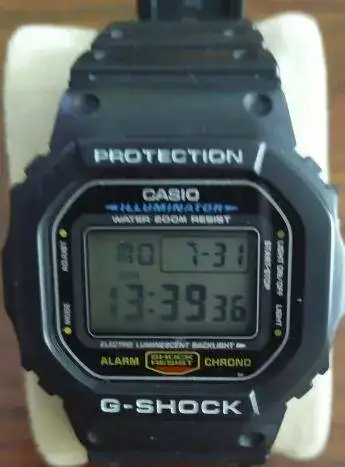 A continuación uno de los pocos cuadrados que tengo: G-Shock DW-5600E-1VER. Por lo visto es una puesta al día de los G-Shock originales. Estéticamente es similar al modelo radio controlado y solar. Este, ni lo uno ni lo otro. Fui a lo barato, lo reconozco (no siempre puede uno comprar un auténtico Lanscotte, y hay que conformarse!). A veces me arrepiento, pero era bastante diferencia y había leído opiniones negativas sobre la recepción de las señales de radio. Lo que sí es seguro es que aguanta un verano de piscineo, playa y golpes contra la pared. Un tío duro.