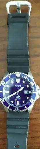 Otro tocho-watch: típico ejemplo de "y por qué leches me pareció buena idea comprarme esto!". Pues porque era barato, tenía números bien gordos y dudé entre este y el que sacaba Tom Cruise en Misión Imposible, pero opté por este. No acerté. No sé qué modelo es, la verdad! Detalles curiosos: tiene la hora en analógico, imitando unas agujas, pero es digital (arriba a la derecha). Que no se ve nada, pero oye, la tiene. También tiene un contador constante de 10 segundos. No para. Qué agobio los relojes hiperactivos!).