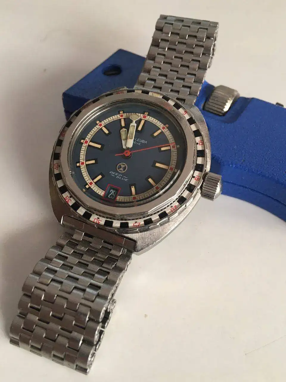 Esas cajas son muy cómodas y al tener tanto bisel y anillo la percepción visual tampoco es enorme, ya que la esfera no es tan grande. Me encanta su azul, los toques de color, el brazalete NSA... Pero esa minutera y el bisel ruletero me fascinan especialmente
