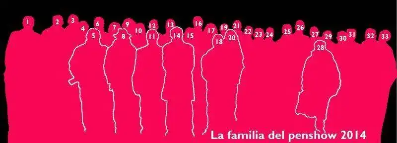 Aquí pongo esta doble imagen de la "foto de familia" hecha a la salida del penshow el pasado sábado 15 de noviembre. Espero que la identificación de los retratados en la foto esté bien. Caso de que haya algún error, os agradecería me lo comentárais por mensaje privado para corregirlo.