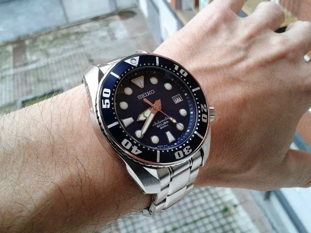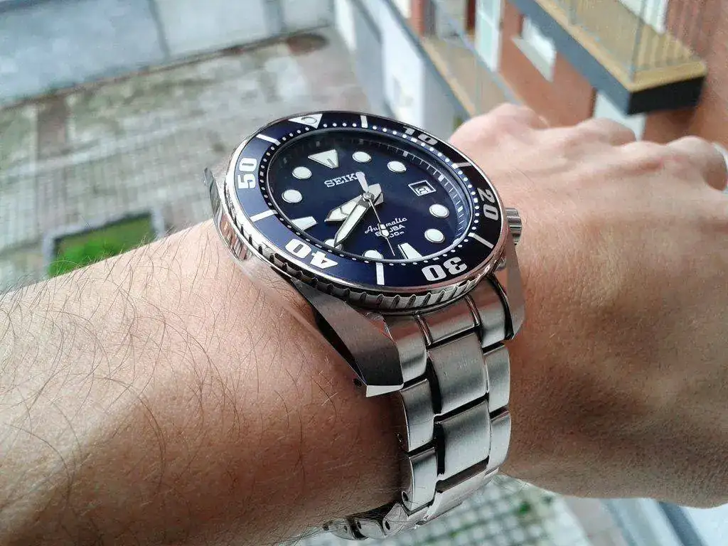 Sin ninguna duda, aquel Sumo es, para mí, el modelo más bonito que se ha hecho hasta la fecha. Un azul sobrio y elegante que se tornaba negro al caer el sol. Lo disfruté mucho durante un tiempo, pero pronto mi codicia relojera hizo que la afición entrara en la siguiente fase y deseara piezas de mayor precio, y digo de mayor precio, porque no es fácil superar en calidad al Seiko Sumo. Pues eso, que lo vendí, si no recuerdo mal, para ir a por un Longines Conquest GMT que, a su vez, después dio paso a un Tag Aquaracer.