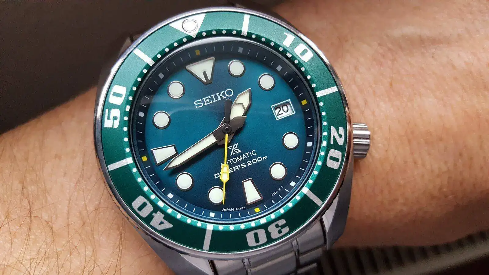 Tiempo después empecé a echar de menos esa obra maestra de Seiko y me compré el Emerald, ya de segunda generación, con la X en la esfera. Un reloj precioso, con esa cautivadora esfera verde turquesa. Tuve que pedirlo a Japón porque, como siempre, la gama media de Seiko en España era limitada. Lo disfruté un tiempo corto, porque enseguida volví a salir de caza mayor... No recuerdo cual fue el sustituto, quizá el Breitling Colt, no lo se.