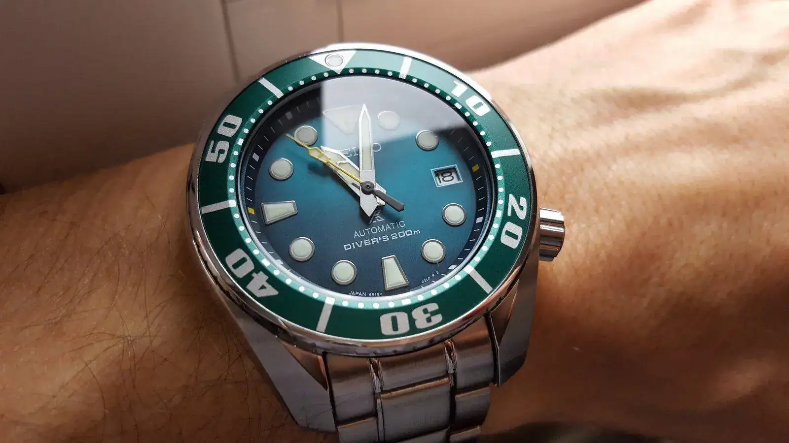 En una época ya más reciente, se me volvió a meter en la cabeza el dichoso Sumo. En realidad, creo que nunca había salido de ella, siempre me arrepentí de haber vendido el primero. Así es que, sin pensarlo demasiado, me compré este precioso Hulk de tercera generación, ya en mercado nacional, con zafiro y calibre 6R35. Fue, sin duda, el que menos me duró… Salió en cuestión de semanas para sufragar la compra del Omega Seamaster y después el Breitling Avenger.