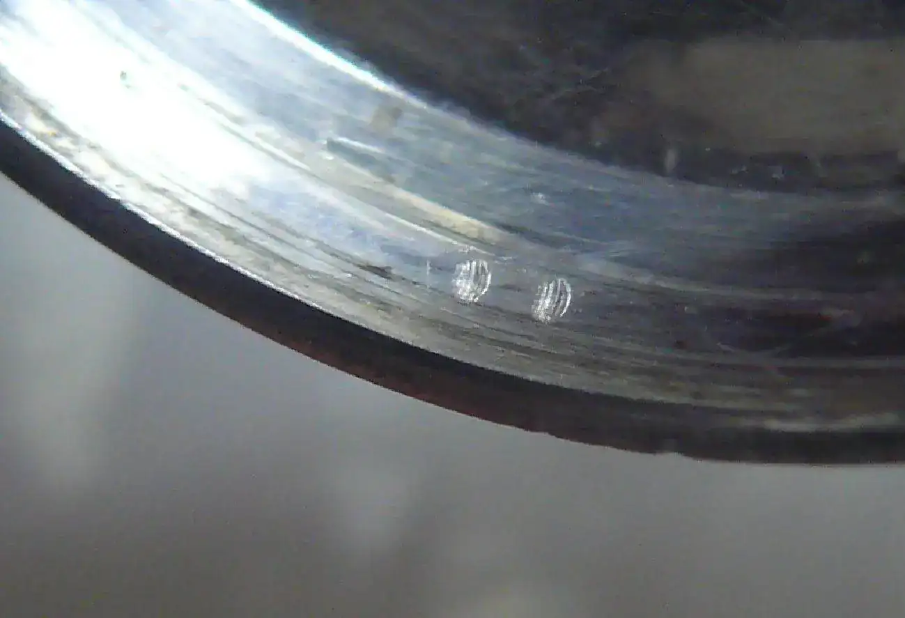 solo estas dos pequeñas marcas a modo de punzonado en un lateral de la cara interna