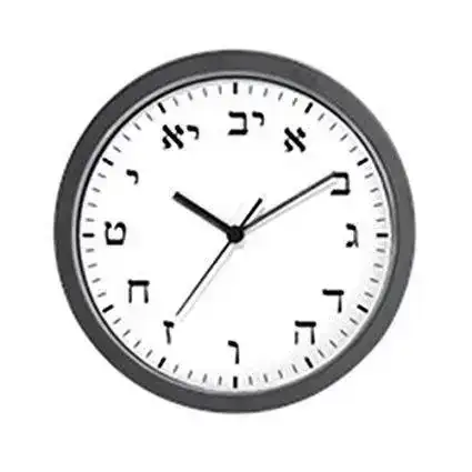 Los relojes hebreos usan las letras del alefato para significar numeros, pues los numeros en la tradicion hebrea se significan por las letras y su valor numerico. de Modo que la primera letgra ALEF vale 1 y la segunda letra BET vale 2 etc... Asi las SEIS estan simbolizadas por la letra VAV y las DIEZ por la letra YOD. Las DOCE por las letras YOD acompañada de la letra BET que suman 12 = 10 + 2