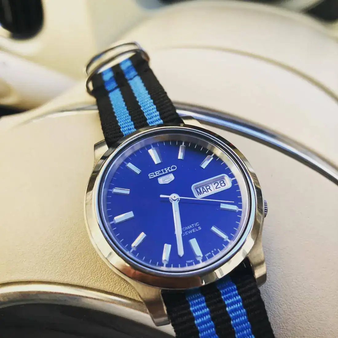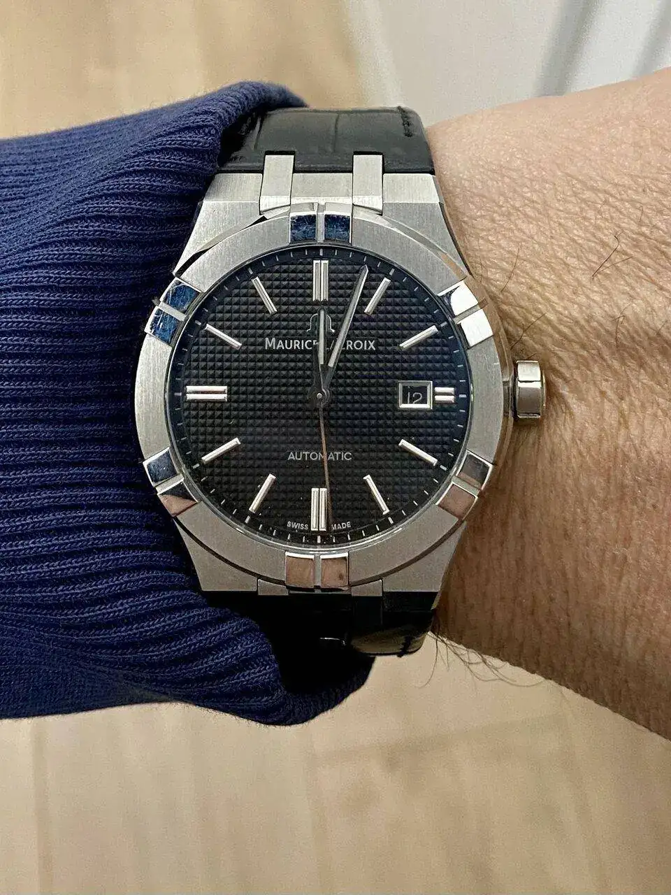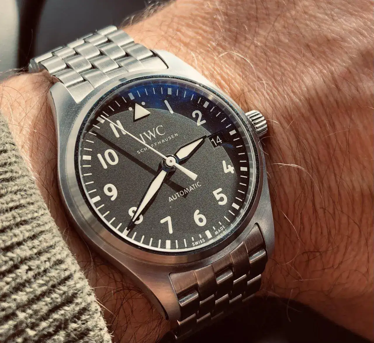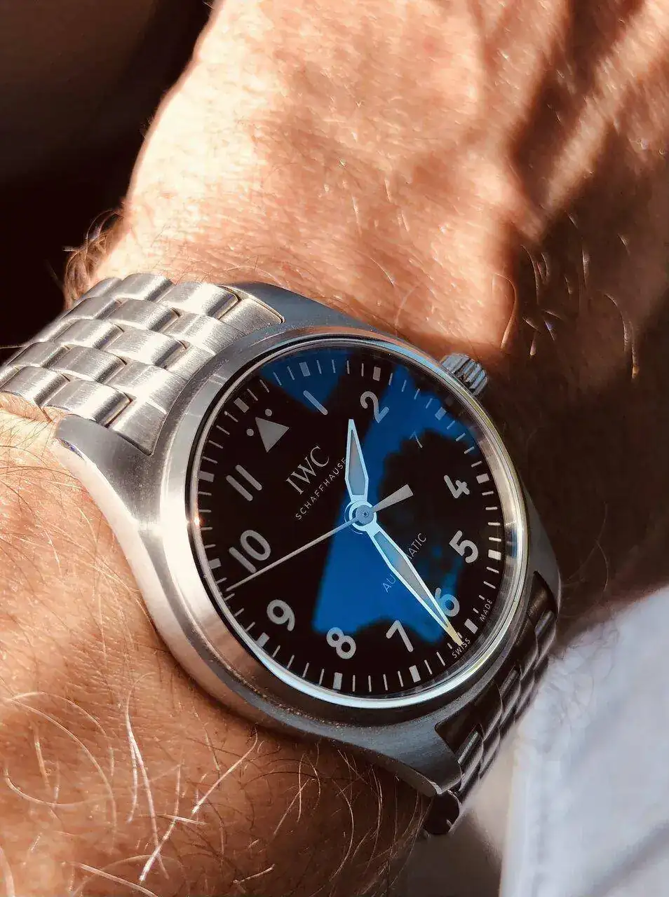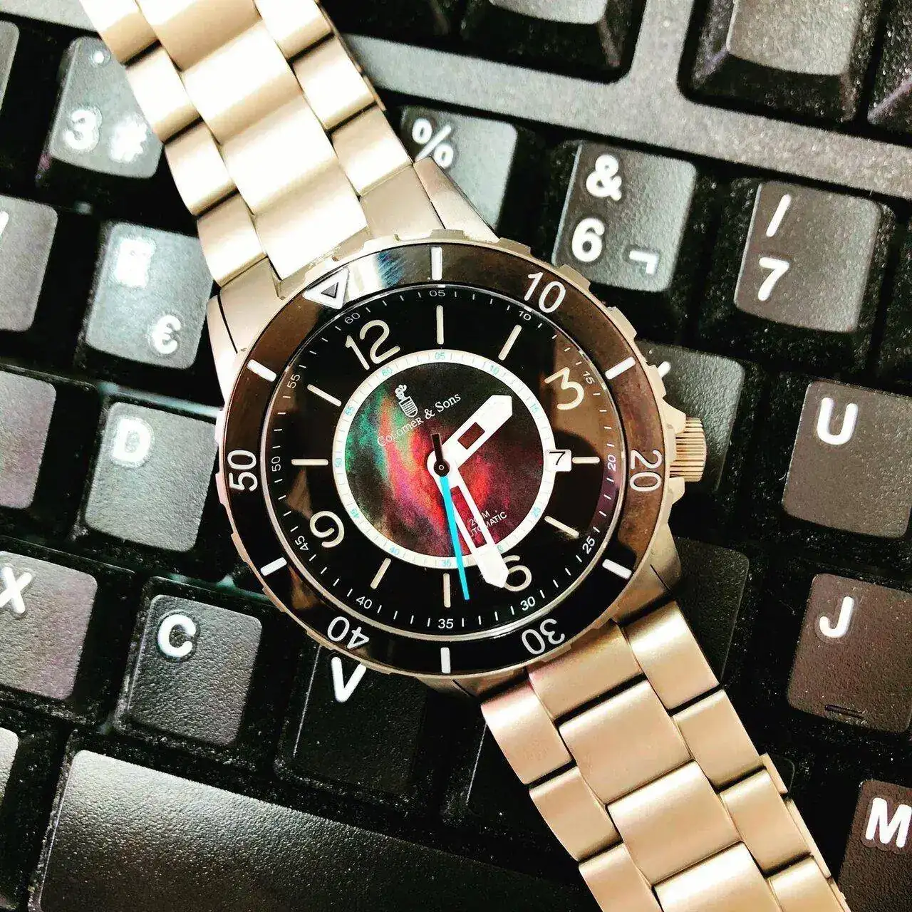 Esta mañana estoy enredando con “el nuevo” y una de las cosas que me ha llamado la atención es cómo la luz y el ángulo en que incide cambia la foto…. Sobre todo sobre las agujas, también en biseles y esferas pero en las agujas creo que marca la diferencia.