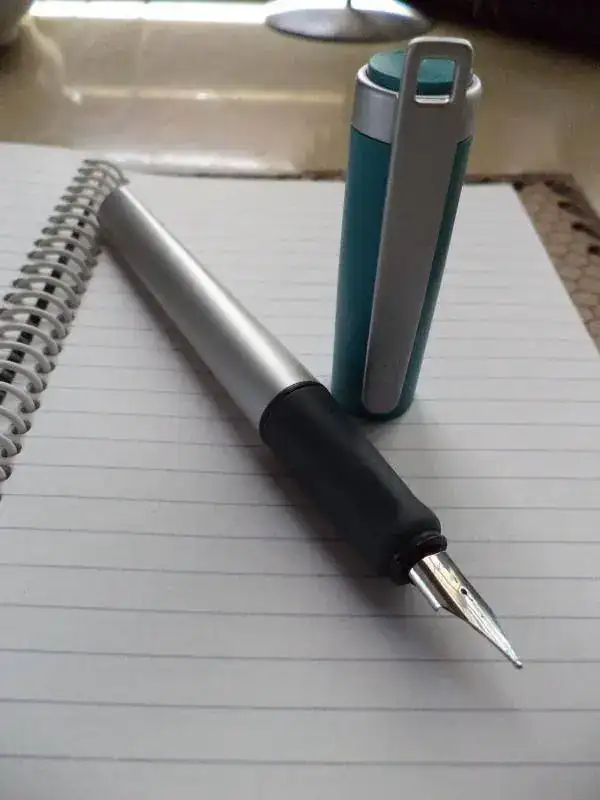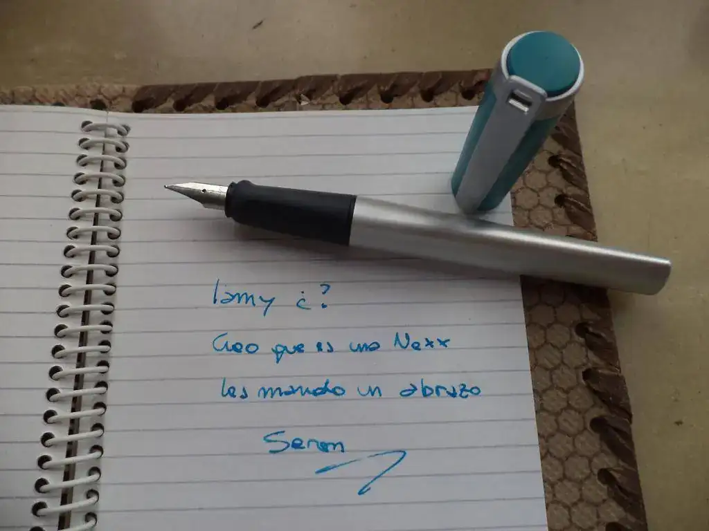 En las imágenes la Lamy - no sé qué modelo es, pero supongo que es una Nexx - junto con mi porta anotador. Me olvidé de sacar foto del convertidor que trae. Luego investigaré en el Foro para saber cómo se usa....