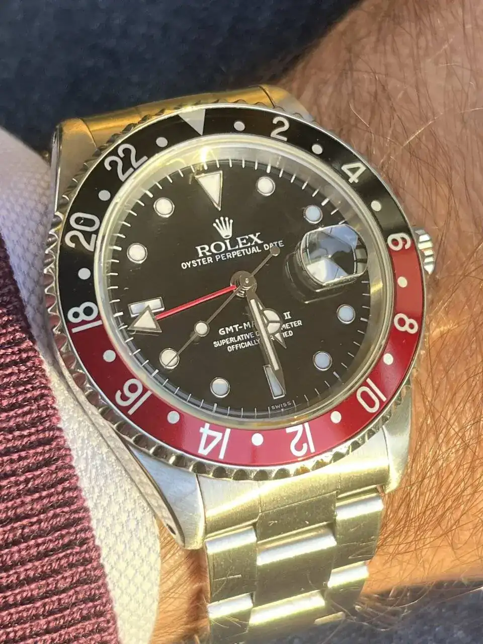 Hará unos 20 días cambié de reloj. Llevo el Submariner en invierno con manga larga "41mm" y el OP36 en verano con manga corta "36mm" y la primera semana el OP36 me lo veía minúsculo y es porque ya me había acostumbrado a los 41mm del Sub.