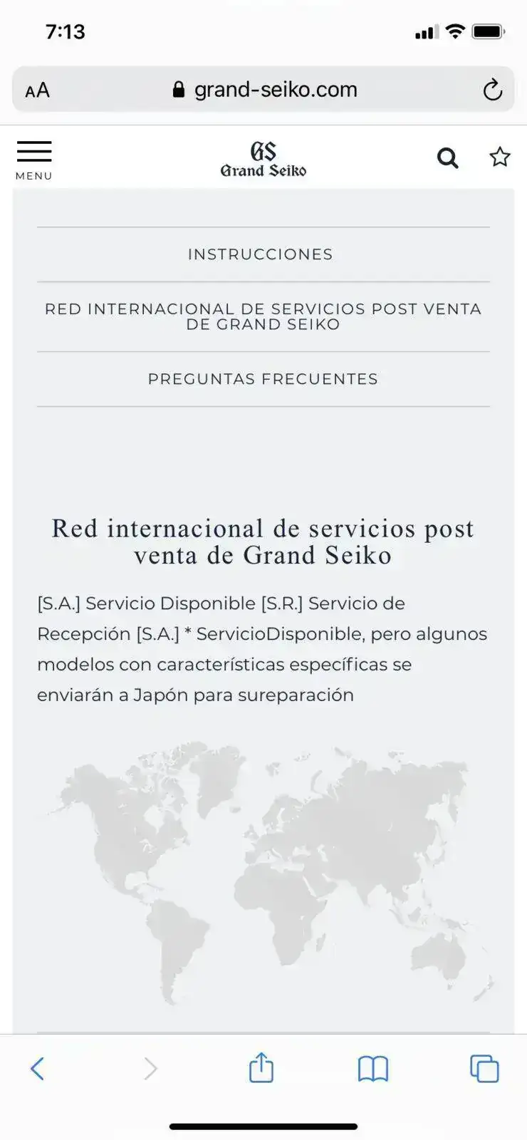 Pues sinceramente no lo entiendo. Hoy mismo he ido a la boutique que tiene GS en Madrid en la calle Ayala a cambiar la pila de mi cuarzo GS, y sinceramente iba acongojado con lo que había leído previamente en este comentario. Al entrar, como es lógico, me han atendido con extraordinaria amabilidad. Y al decirles a lo que venía, me han indicado que ningún problema en que ellos lo envíen al SAT oficial de Seiko ó que lo podía llevar yo mismo dándome la dirección. Yo, todo sorprendido, les he dicho irónicamente que si la dirección era de Japón ó de Holanda. Ellos, sin entender la broma en absoluto, me han dicho que estaba bastante cerca pero que no era necesario que me molestara para nada, y que ya lo enviaban ellos. Ahí les he preguntado que a qué dirección exactamente se referían, y me han dicho que era en Martínez Campos 28, a unos 5-10 minutos andando. Me han dado una tarjeta grabada con dicha dirección, les he dado efusivamente las gracias y para allí que me he dirigido.