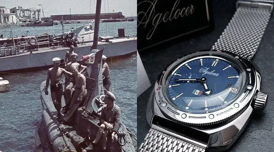El despropósito del engaño queda ya adornado cuando seguimos leyendo en su historia, y vemos que su esta firma "Suiza" se hizo famosa en los años 60 por fabricar un reloj para la marina Italiana, y el reloj es este...
