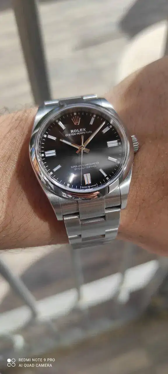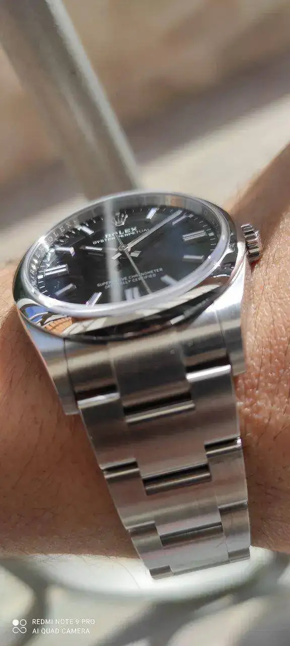 RELOJAZO! Enhorabuena.Os enseño mi primera corona, despues de una larga lista de espera he tenido que ir al mercado gris, es pequeño pero me queda muy bien, me llena toda la muñeca, he notado que no tiene antireflejos, es algo normal de rolex?? Tambien he notado que sacando la tija a tope( modo cambiar hora) tiene algo de juego no me ha pasado en ningun otro reloj, os pasa a vosotros es vuestros op o algun otro rolex??. Bueno me dejo de tonterias y os lo enseño.