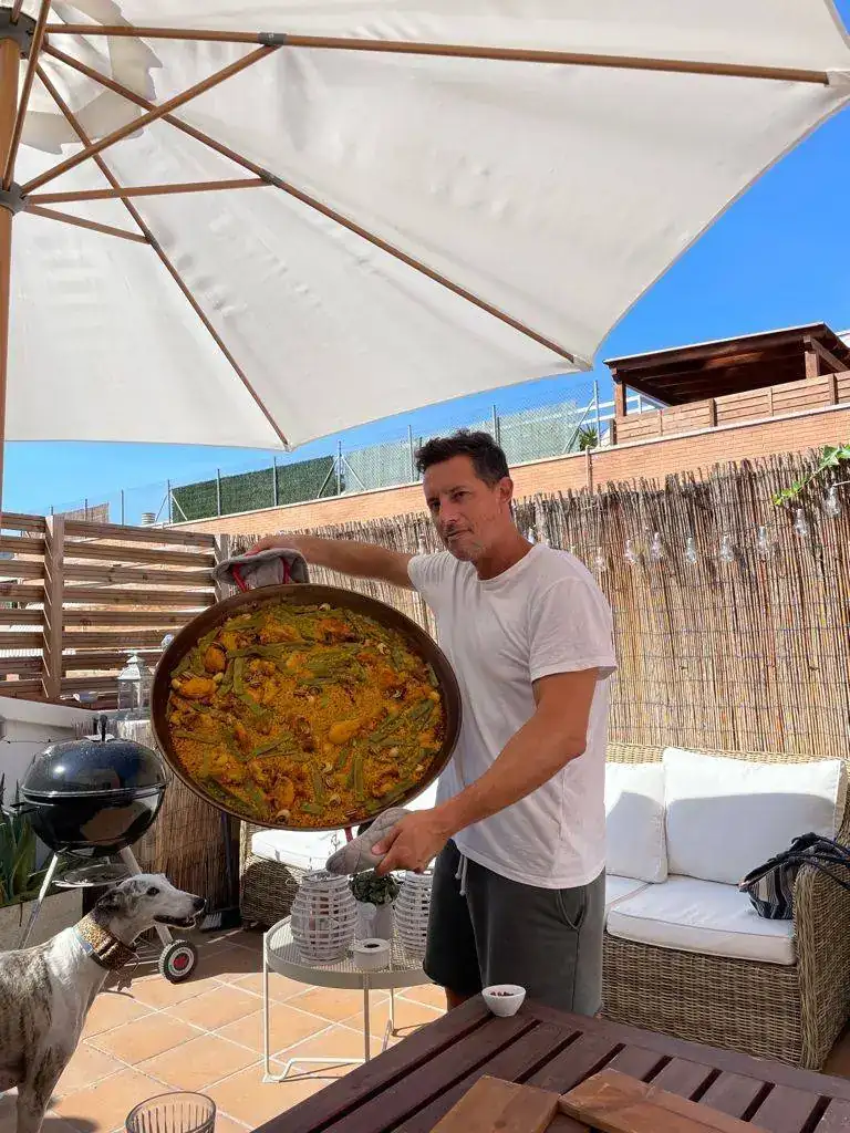 La paella también es lo que nos muestra el compañero Bito, que además tiene muy muy buena pinta. Es como las paellas de siempre, aunque ahora se haya puesto de moda que haya poco arroz y que asome el caldero por debajo. Para mí la paella es como la de Bito, incluso podría confundirla con una de las que hacía mi abuelo.