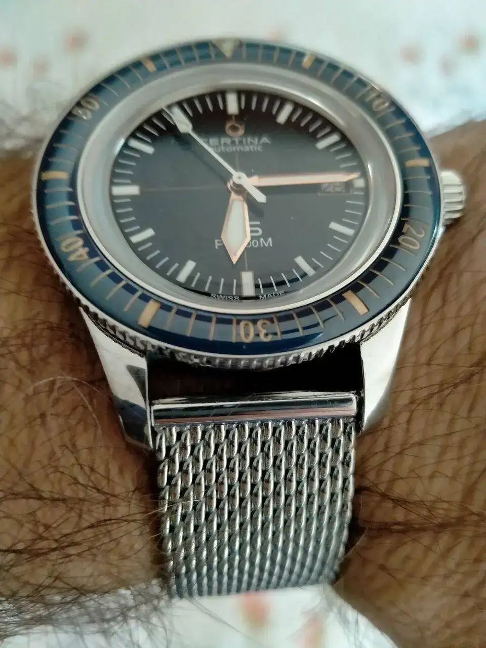 La correa milanesa al ser de la misma casa CERTINA también le sirve al Diver y le queda impresionante. El PH200 también se puede comprar con milanesa (pero con la esfera y bisel en negro). A este con esfera y bisel azul le queda incluso mejor ...