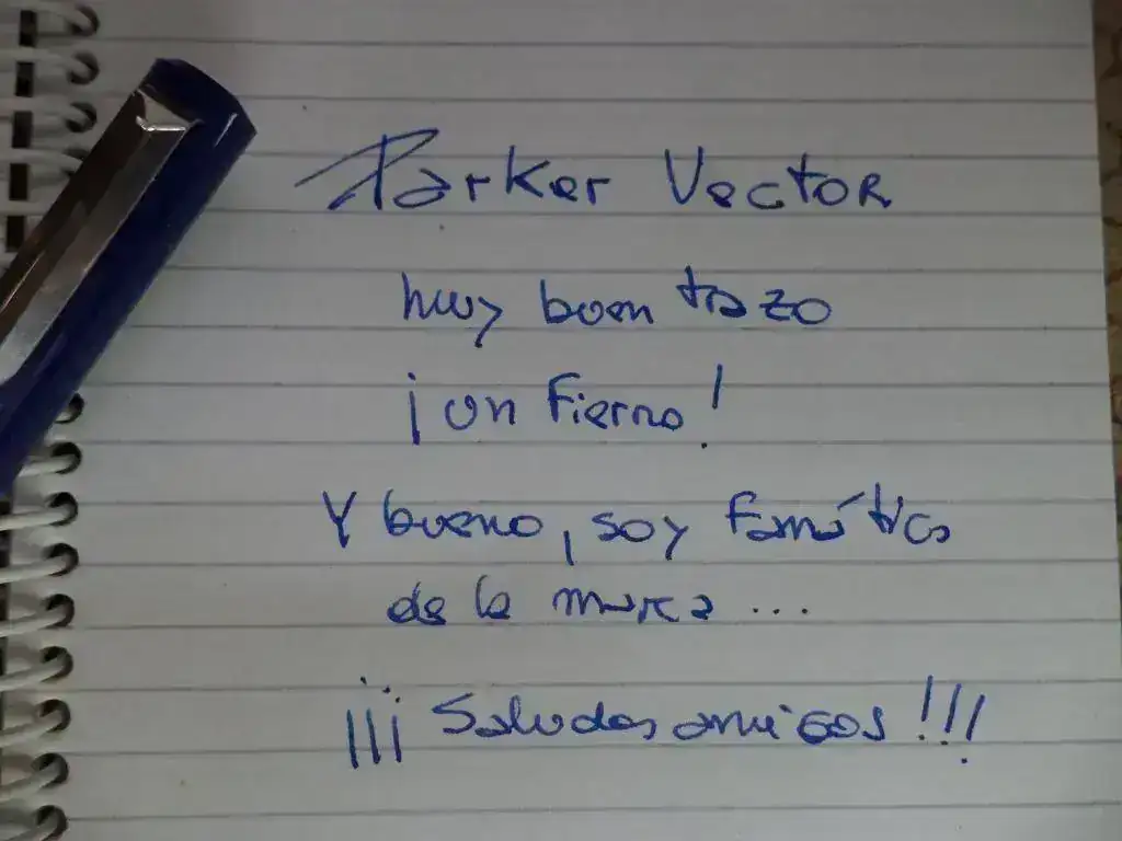 En el hilo de mi presentación me he referido extensamente a las dos plumas de uso diario: la gloriosa 45 y la joven Vector. Pues... la Vector se me ha puesto celosa porque aún no la he presentado en el Foro. Ella es muy guapa, cómoda, ha resistido golpes y caídas innumerables; es muy noble en el trazo y con una agarre fabuloso: con ustedes... La pequeña, dislocada y alegre Vector: