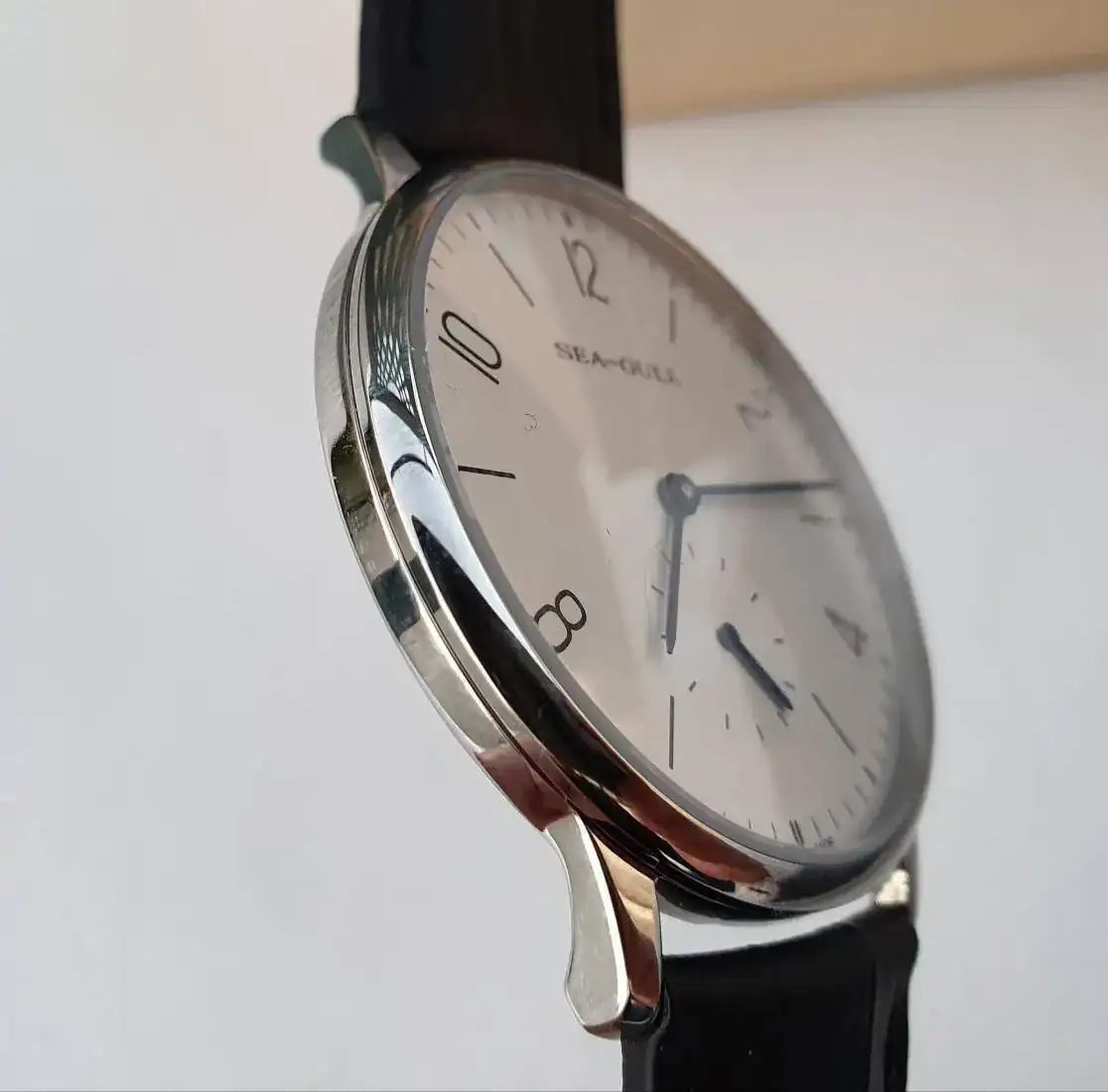 Se trata de un reloj sencillo con un calibre mecánico de carga manual, lo que me llamó la atención fue su grosor de tan solo 8 mm.