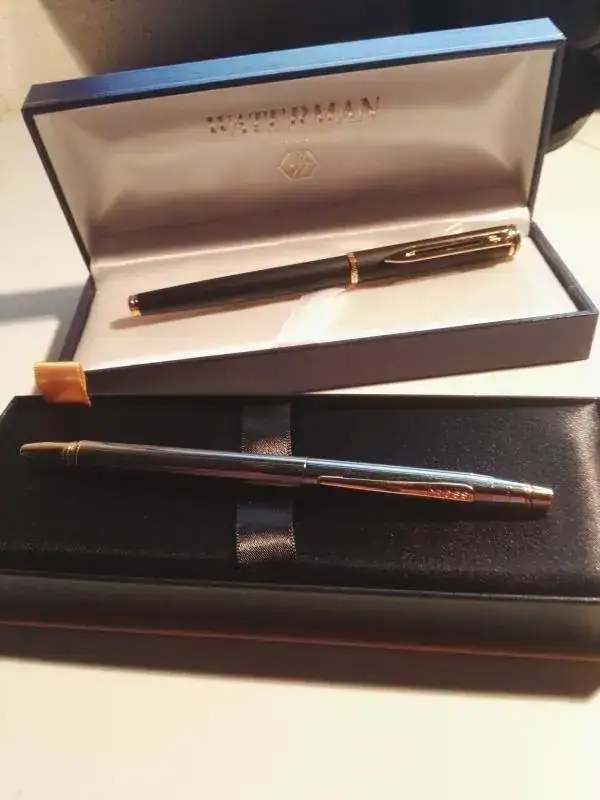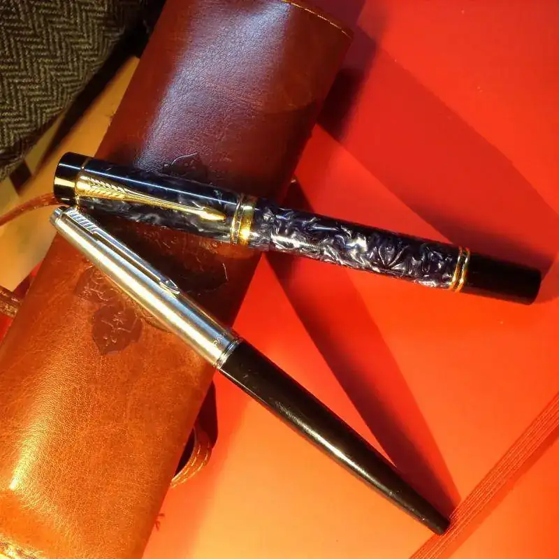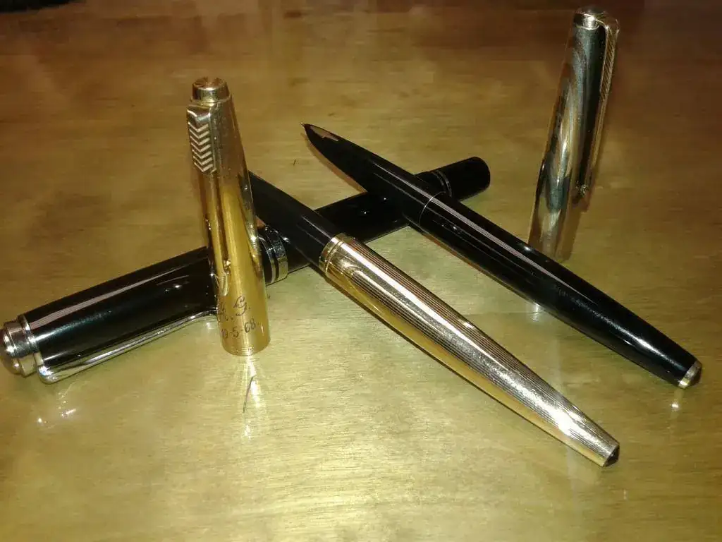 En mi caso, primera y última coinciden en la marca Parker. La primera, allá por 1982, una Parker 45 de fabricación española, regalo de mi padre. Lleva 35 años dando batalla con la precisión de un reloj suizo. La más reciente, una Parker Duofold Centennial, de jugoso y suave plumín M.
