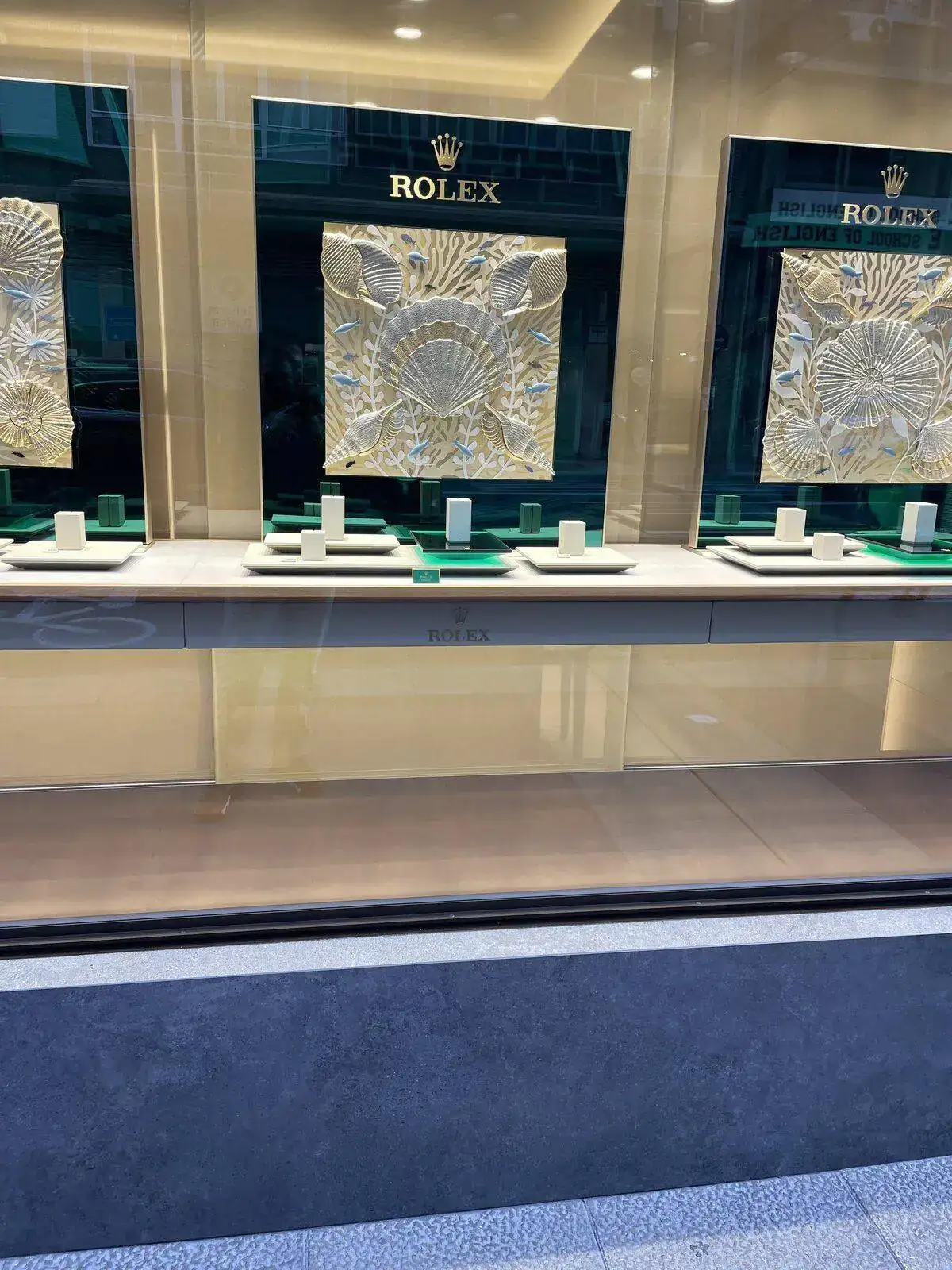 Me llama la atención, o quizás ya no tanto, lo penoso de la marca en sus escaparates. Ojo, esto ocurre en muchas otras relojerías de tantas ciudades. Quizás no tan pobre como esta, o si.