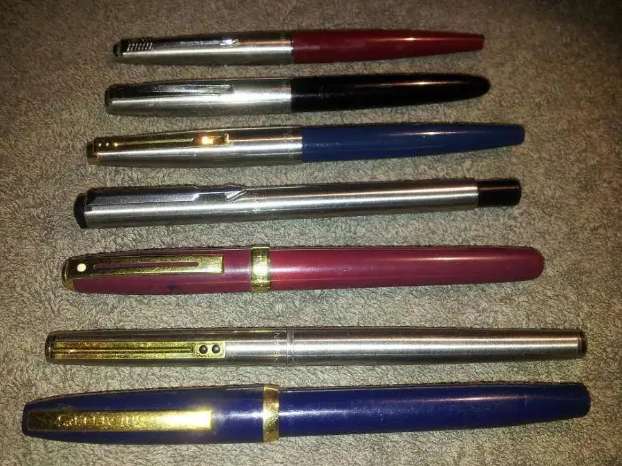 Los capuchones rezan marcas, modelos, etc.....pero a saber!!!. Eso sin eran baratas (no Montblanch, Omas,......etc)