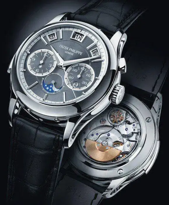 patek 5951 con calendario perpetuo, cronógrafo con ratrapante y fases de la luna en disposición a las 12 (algo atípico en un reloj de estas características)